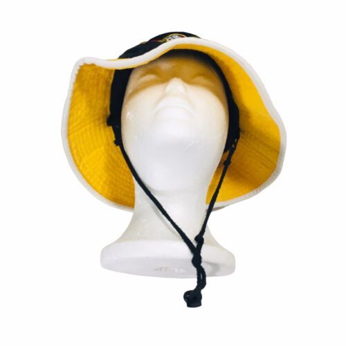 Elevate your beach look with this Cafe Moto Iconic Bucket Hat in Black Gold with a convenient chin strap. The hat is made from breathable cotton, ensuring comfort even on hot days. It features a classic bucket hat style that's perfect for men who love to hit the beach.