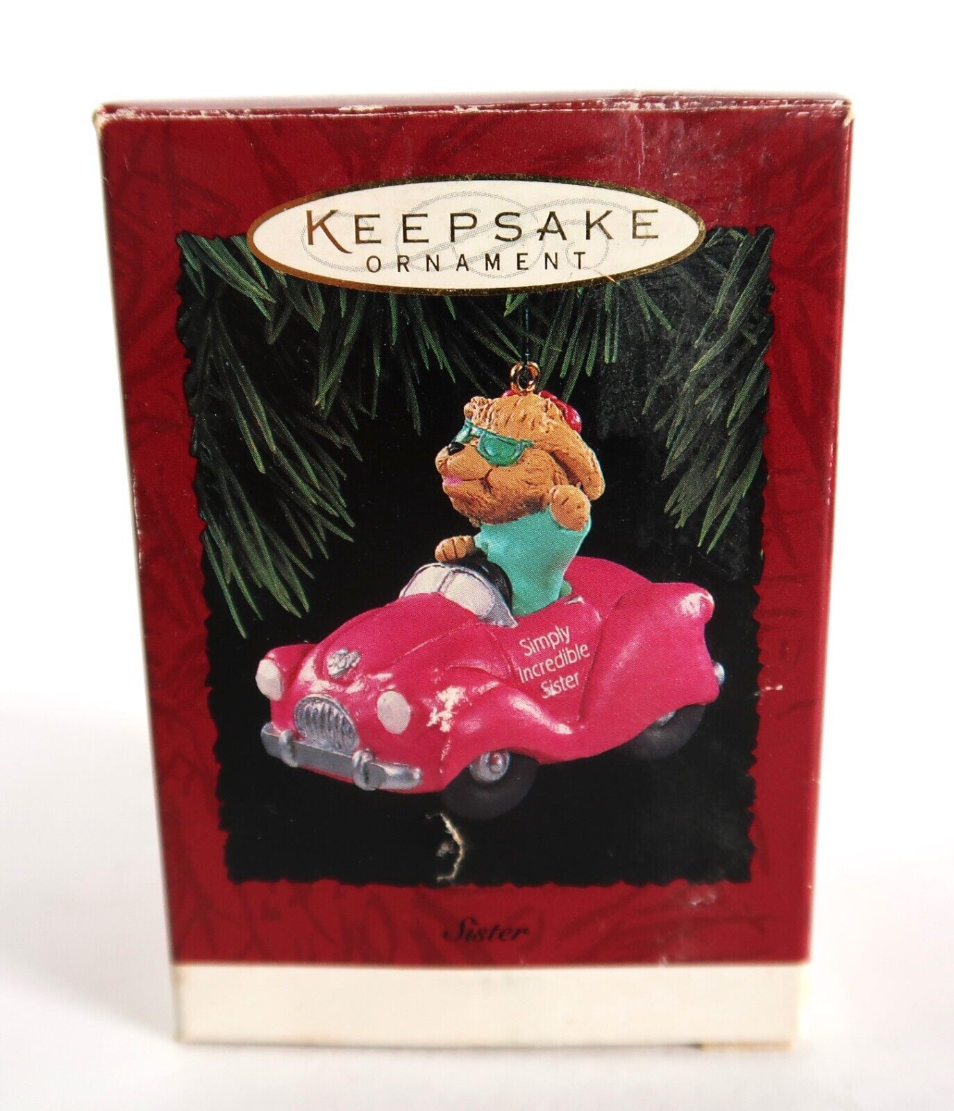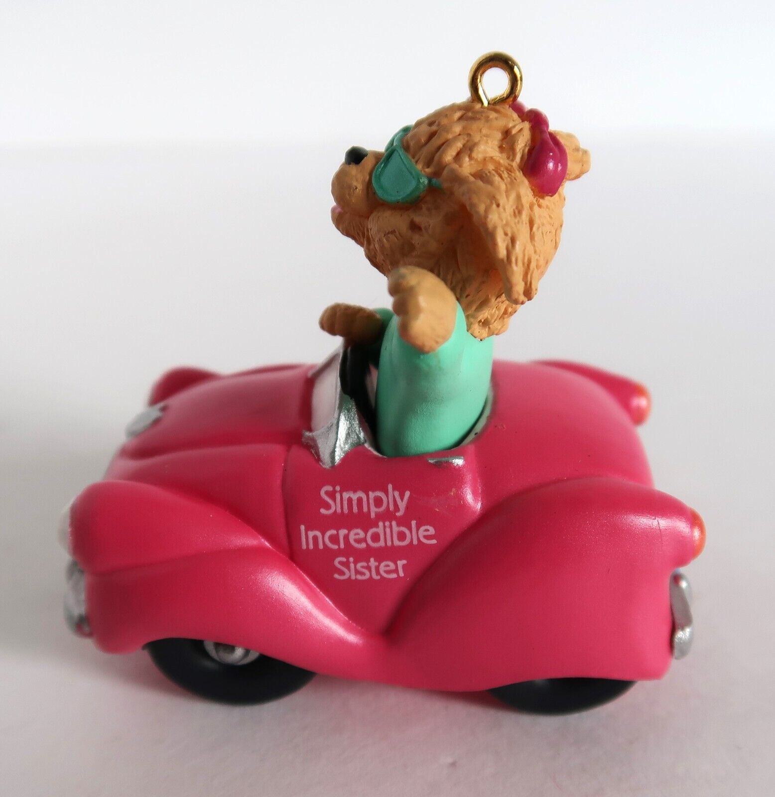 Vtg Hallmark Keepsake Ornament in Box '94 Simply Incredible Sister Car Pink Bear