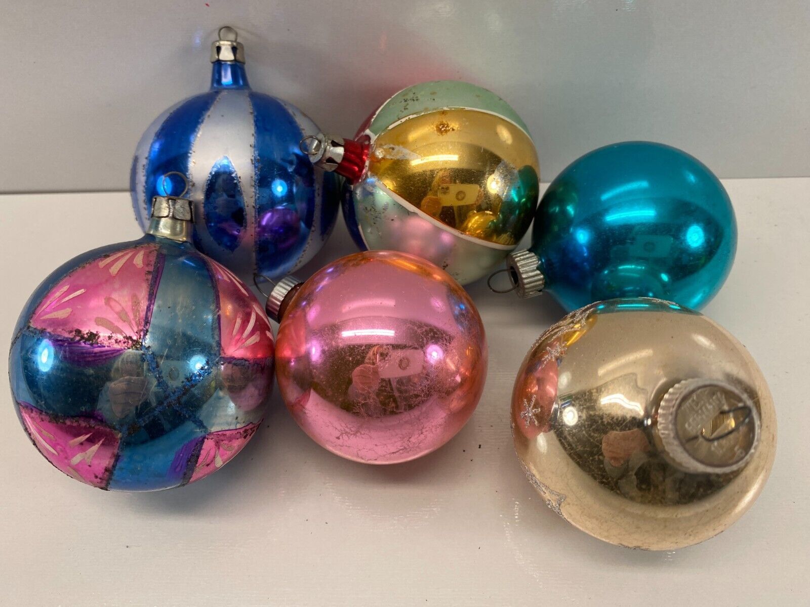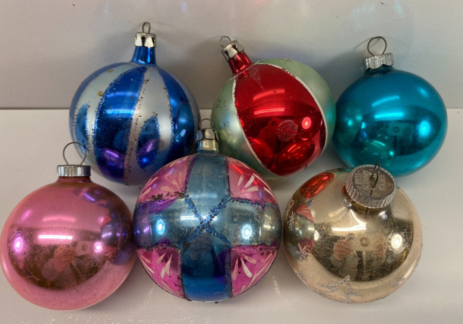Vintage Lot 6 Various Mercury Glass Christmas Ball Ornaments Shiny Brite Poland