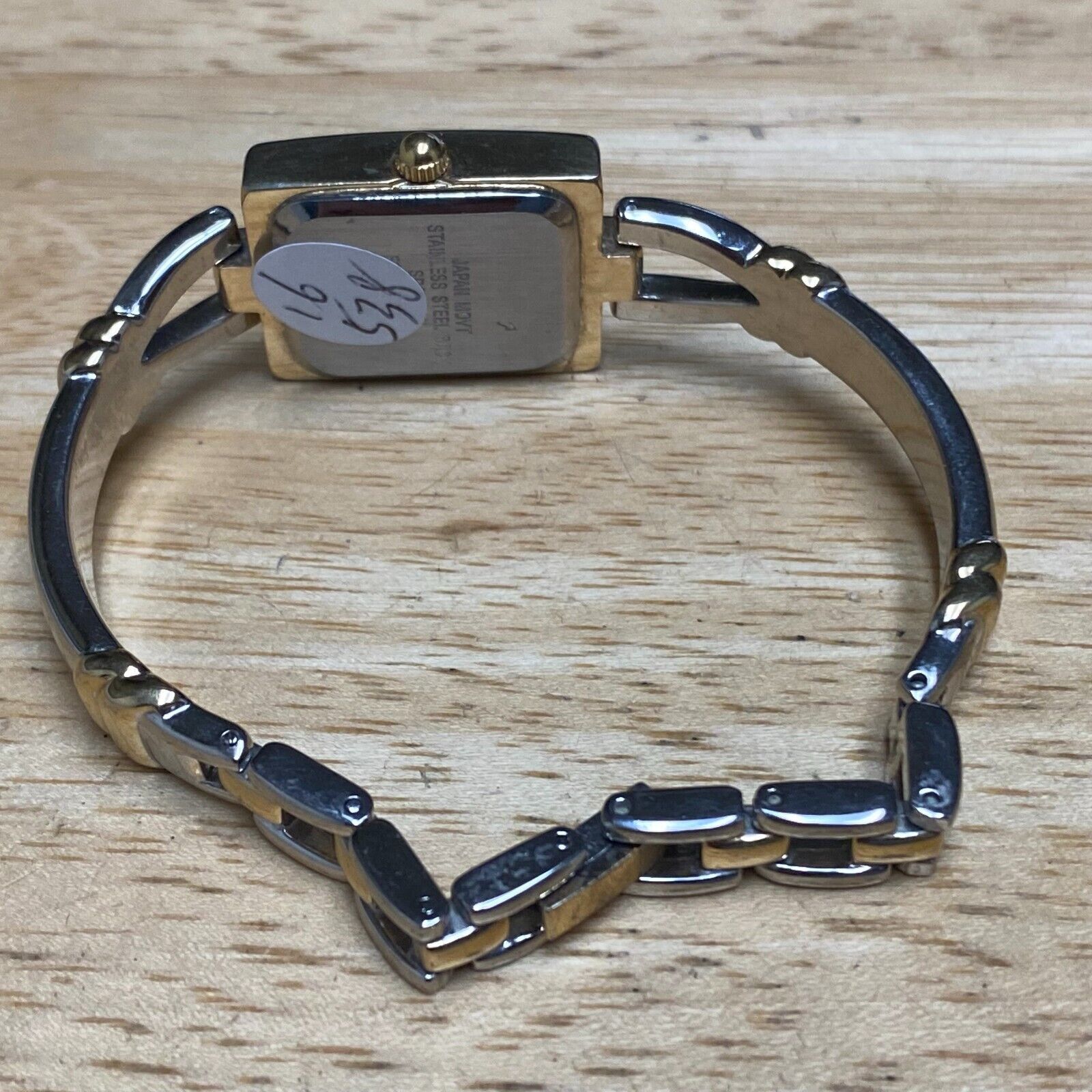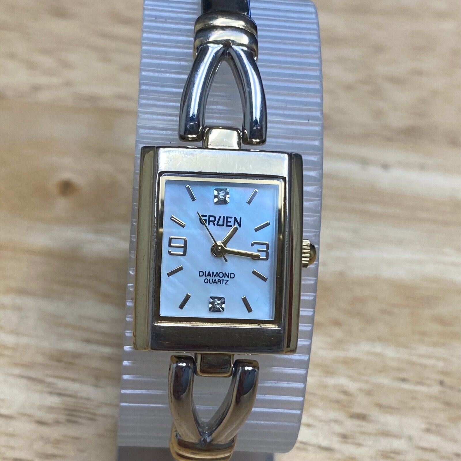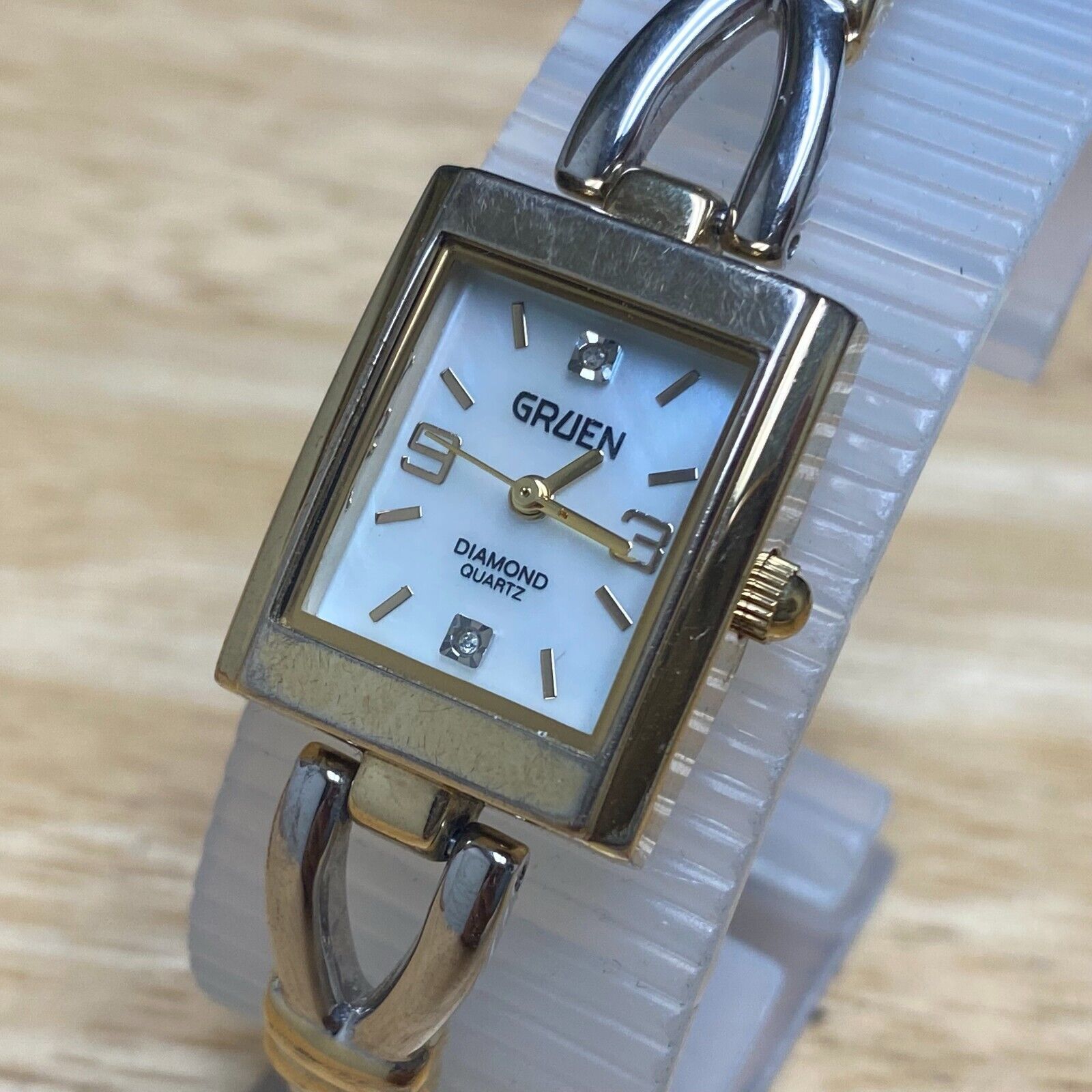 Gruen Lady Dual Tone Genuine Diamond MOP Rectangle Analog Quartz Watch~New Batte