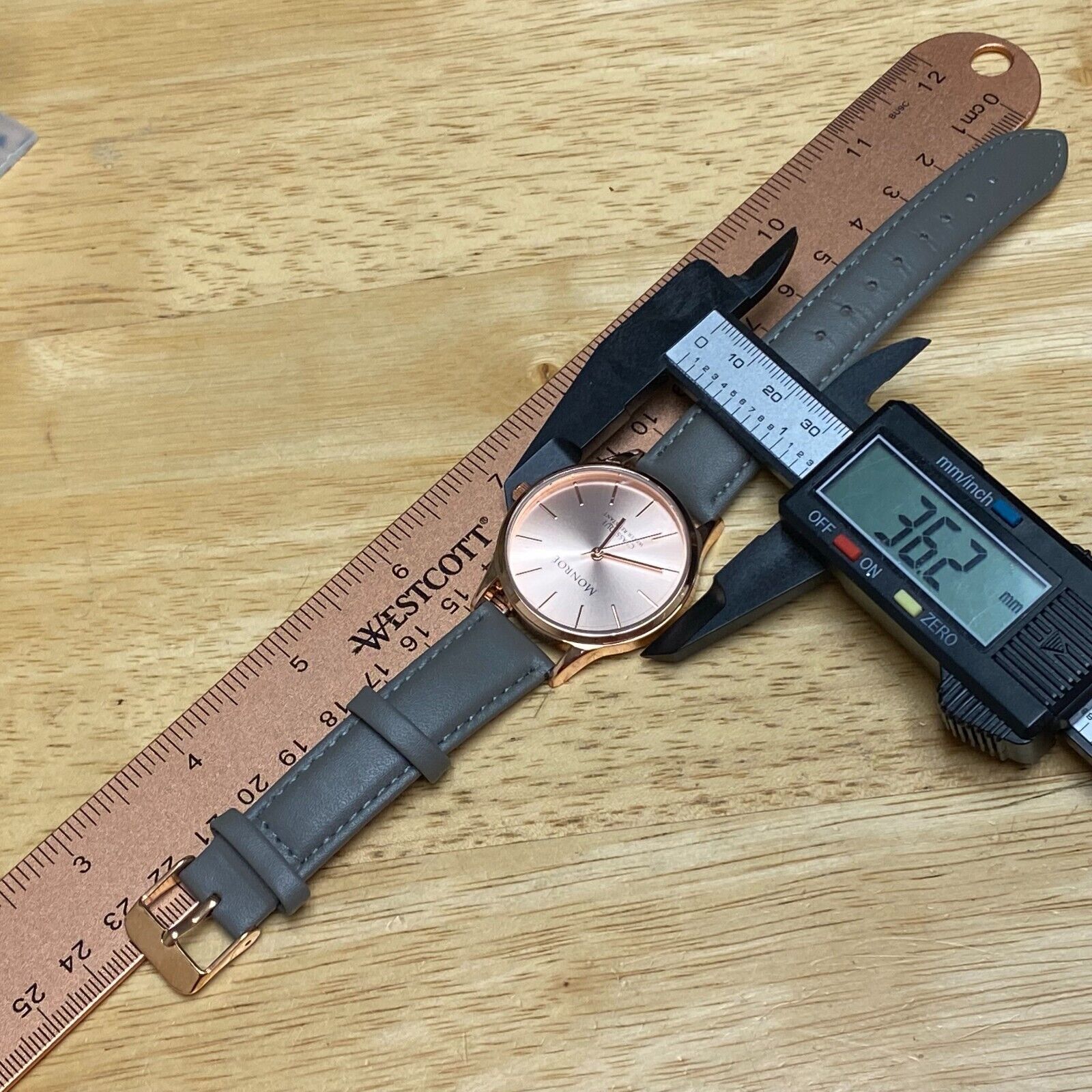 Watch dimension and size: please review the last image for size measurements. Shown on caliper is the approximate watch width in mm without crown or button.