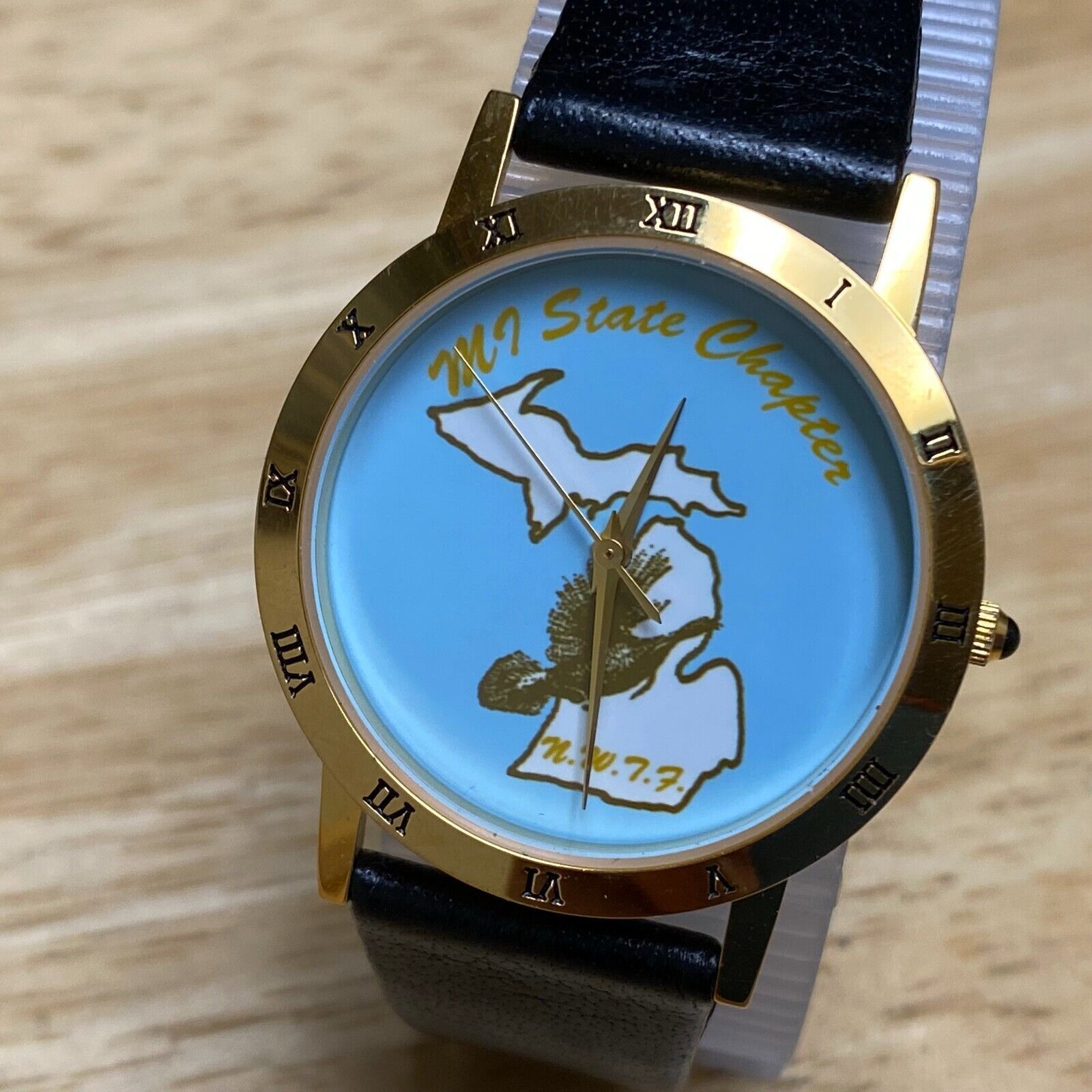 Unused Image MI State Chapter Gold Tone Leather USA Made Quartz Watch~New Batter