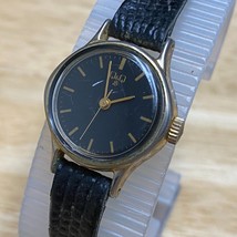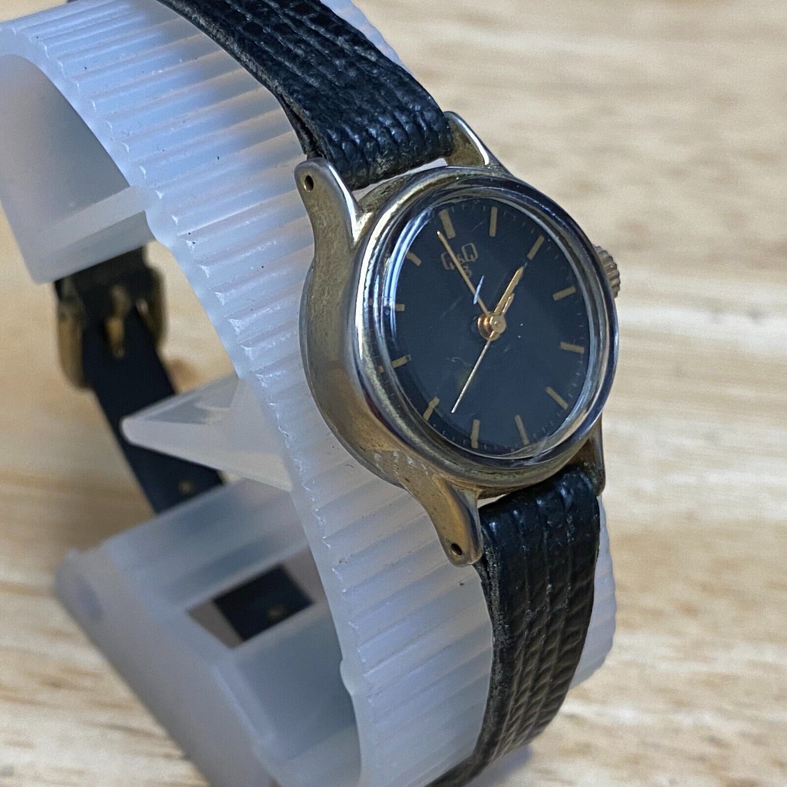 Vintage Q&Q Lady Gold Tone Black Dial Hand-Wind Mechanical Watch