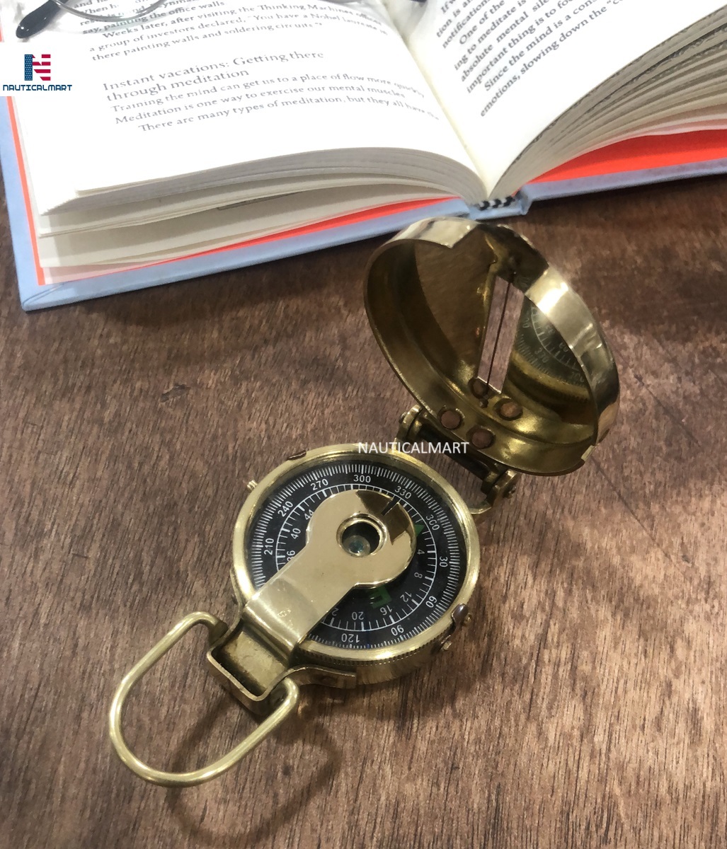 Antique Brass Fully Functional Vintage Old Style Military Compass
