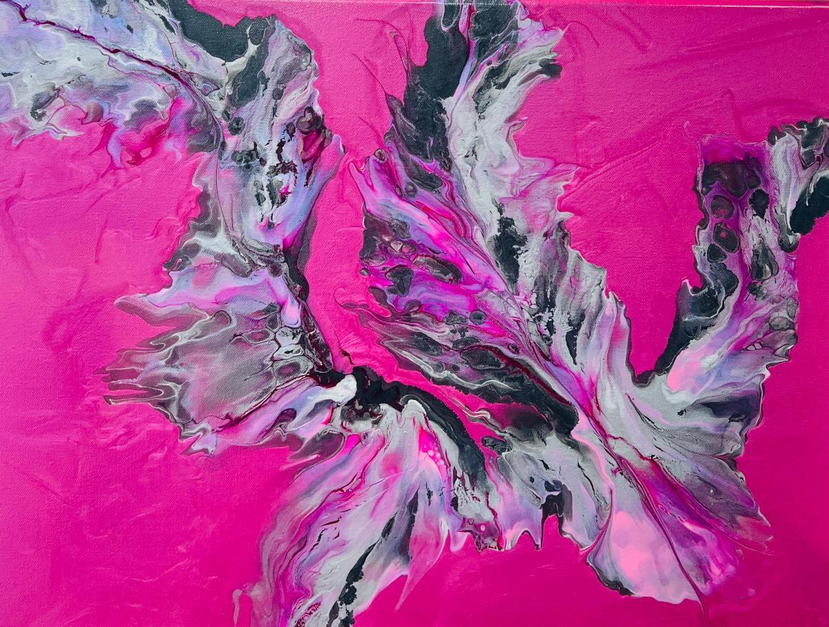 Pam Davidson Contrast Pink Black H/S Original Abstract Pour Canvas Art