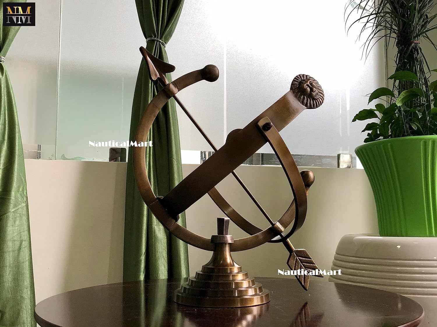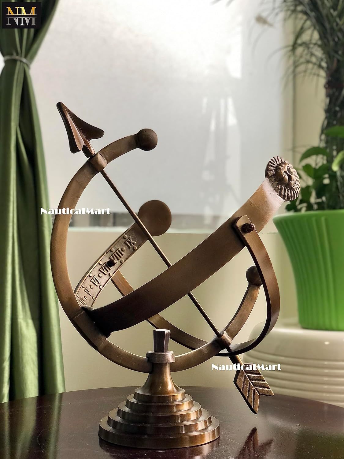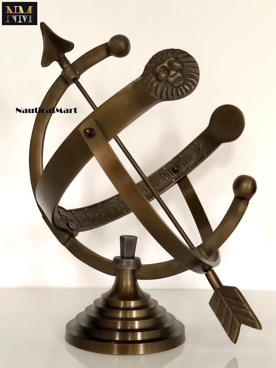 Solid, thick Aluminum casting with a forcefull arrow gnomon Commands attention and second glances wherever it is placed This Elegant reproduction of European Demonstrational Armillary Sphere shows a relationship among the significant lines and points of the sky. Aluminum Armillary sphere features a rich patina finish that will not tarnish or show fingerprints upon touching. The heavy solid rosewood base has been floored with a premium velvet patch which won't let this decor sphere slip or drag away easily on slippery surfaces. Keep exploring Nagina International for more such amazing nautical or non-nautical and functional products through our huge inventory for every need of our esteemed customers. We have a huge variety of products that suits every customer's need and applications.