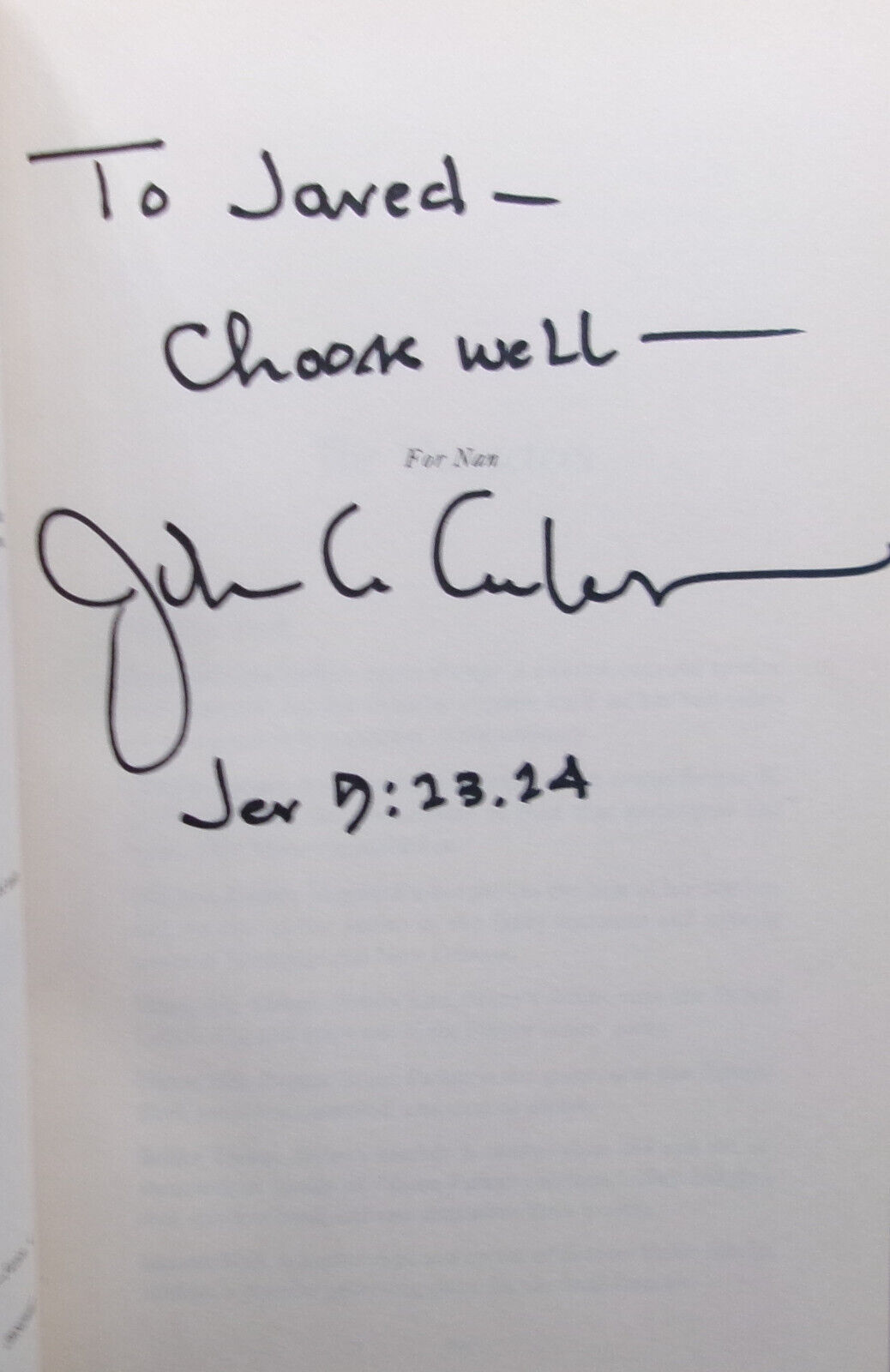 Inscribed "To Jared, Choose Well" and SIGNED by the author with a biblical reverence note "J 9:23.24", to the title page.