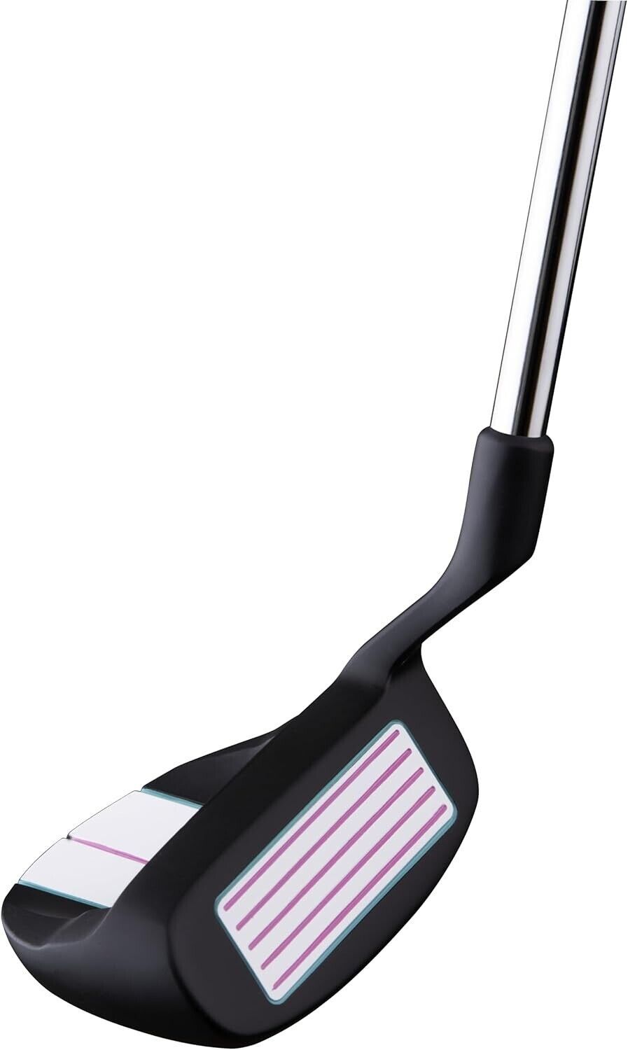 wide sole, low center of gravity head design sets up like a putter for ease of use