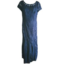 NEW Adrianna Papell Navy Lace Godet Jeweled Neckline Gown Size 6 added to cart.