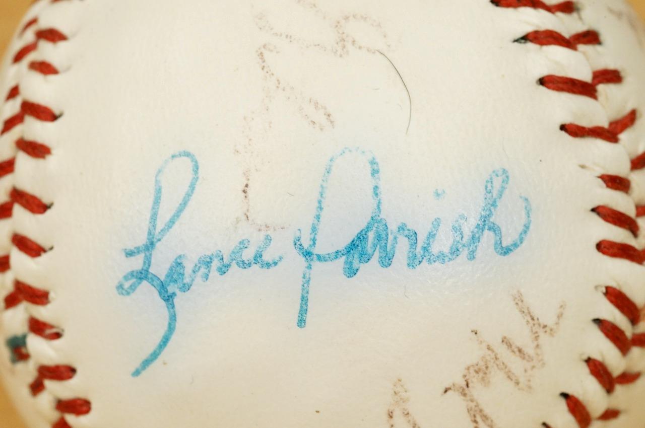 Autographed Detroit Tigers 1982-83 Team Baseball Lou Whitaker, Sparker Anderson, Alan Trammell, Lance Papish, Rick Leach, Enos Cabell, Johnny Grubbm Larry Herndon, Kirk Gibson, Doug Bair, Milt Wilcox and two more. Includes dislay case.