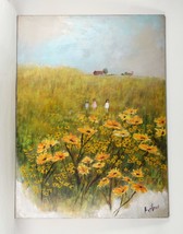 Lynne Heffner: Untitled - Children in Fields of Flowers Oil Painting Signed 1966
