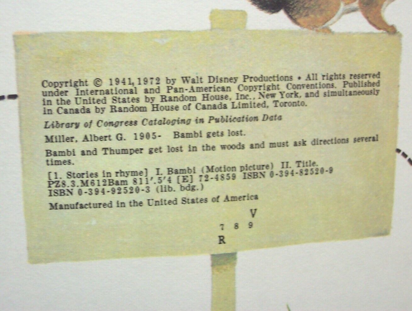 VINTAGE Walt Disney Wonderful World Of Reading BAMBI GETS LOST BOOK 1972
