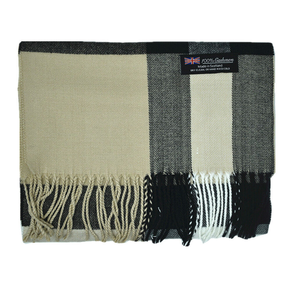 3 Pcs Beige Black Plaid Cashmere Scarf Scarves Scotland Mens Womens