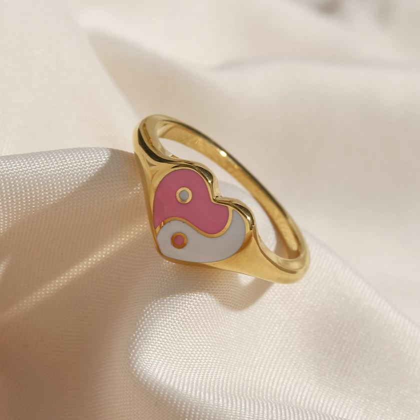 Elegant PVD-Stainless Steel Cute Heart Shape Enamel Yin Yang Ring - FAST SHIP!