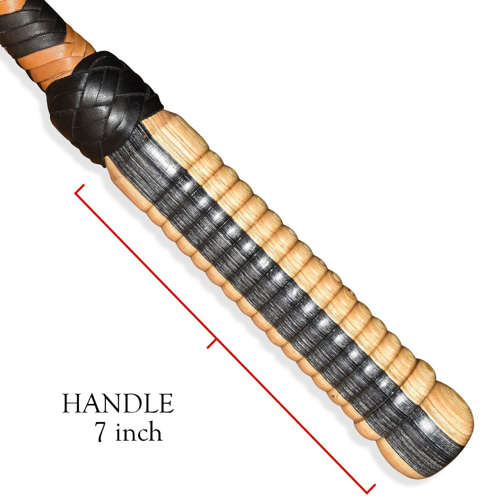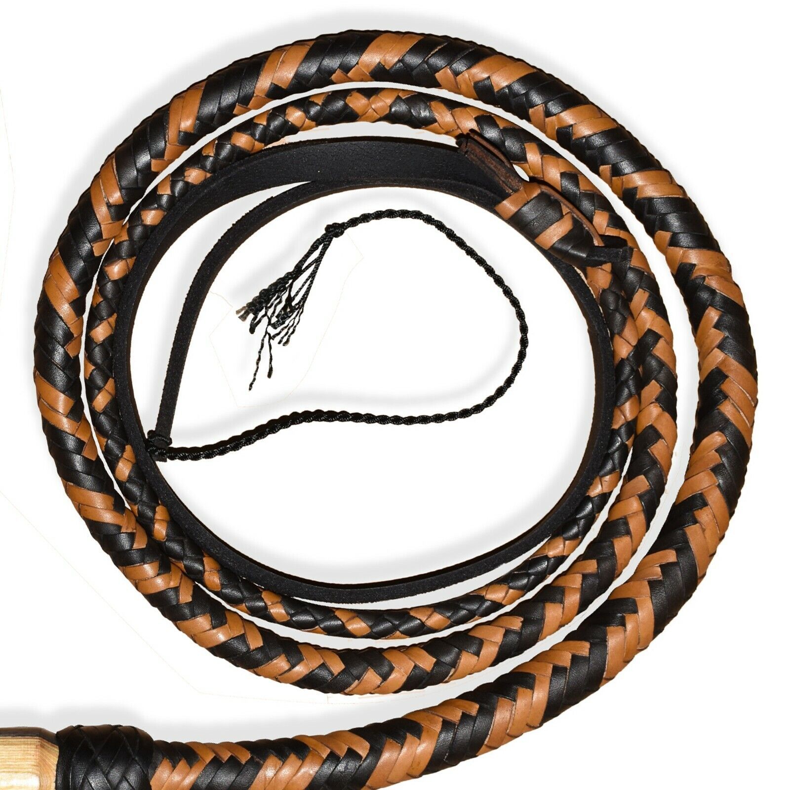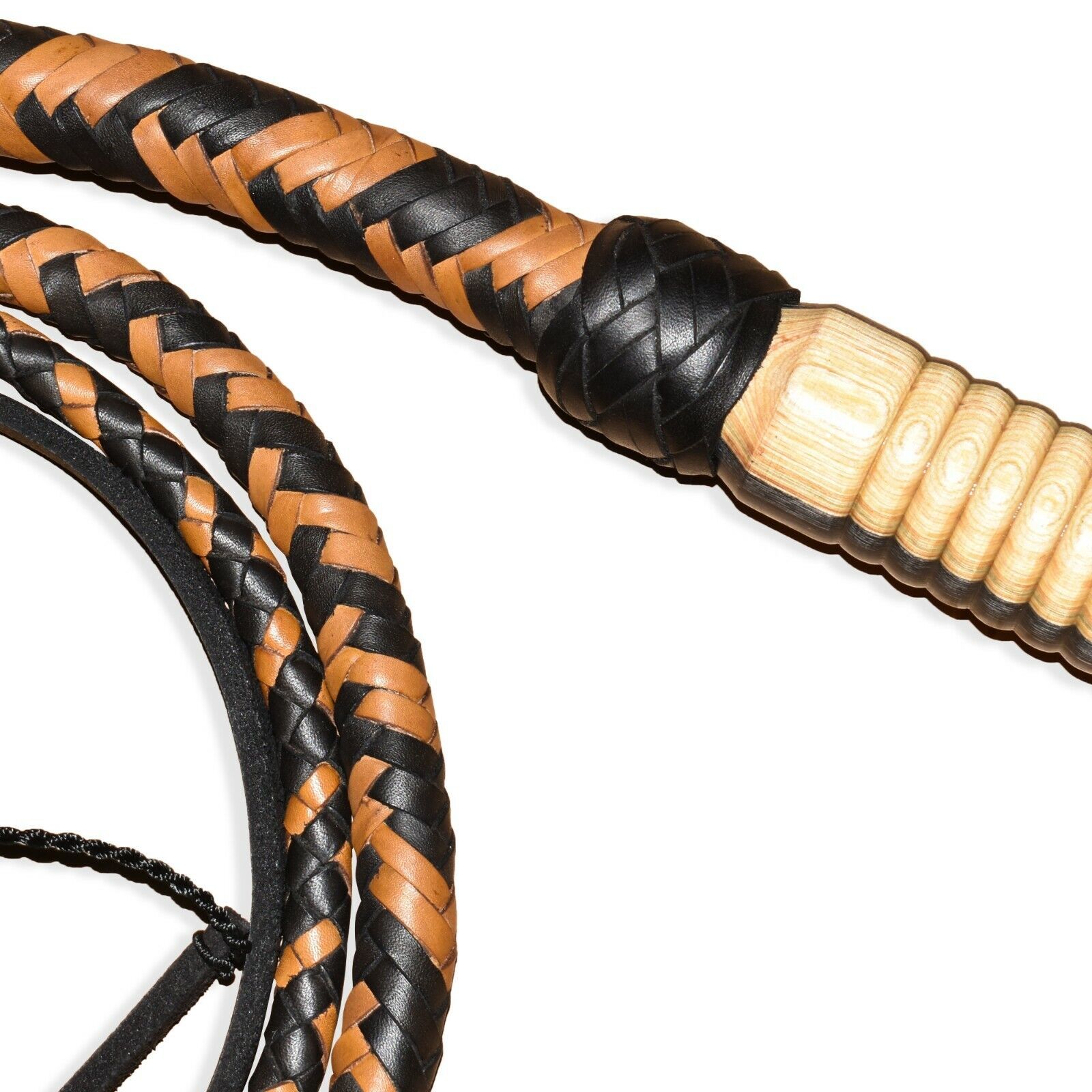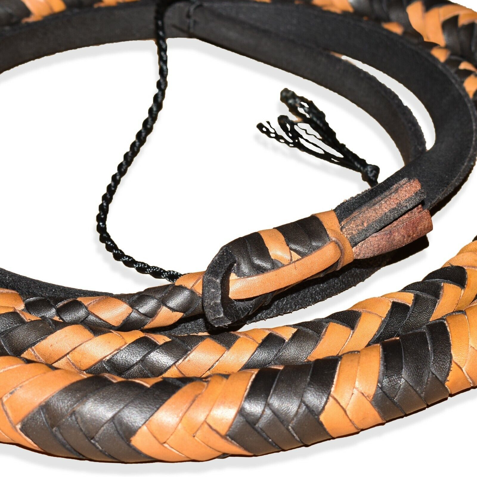 Bullwhips starts with a steel spike for the handle that provides both a solid foundation and weight to balance the thong while a core is the innermost layer inside the thong of the whip. Then consists of two braided bellies of 4 strands each and two bolsters. The overlay is done in 16 plait. All the minute details are taken into account to achieve the look and feel of the original whips.