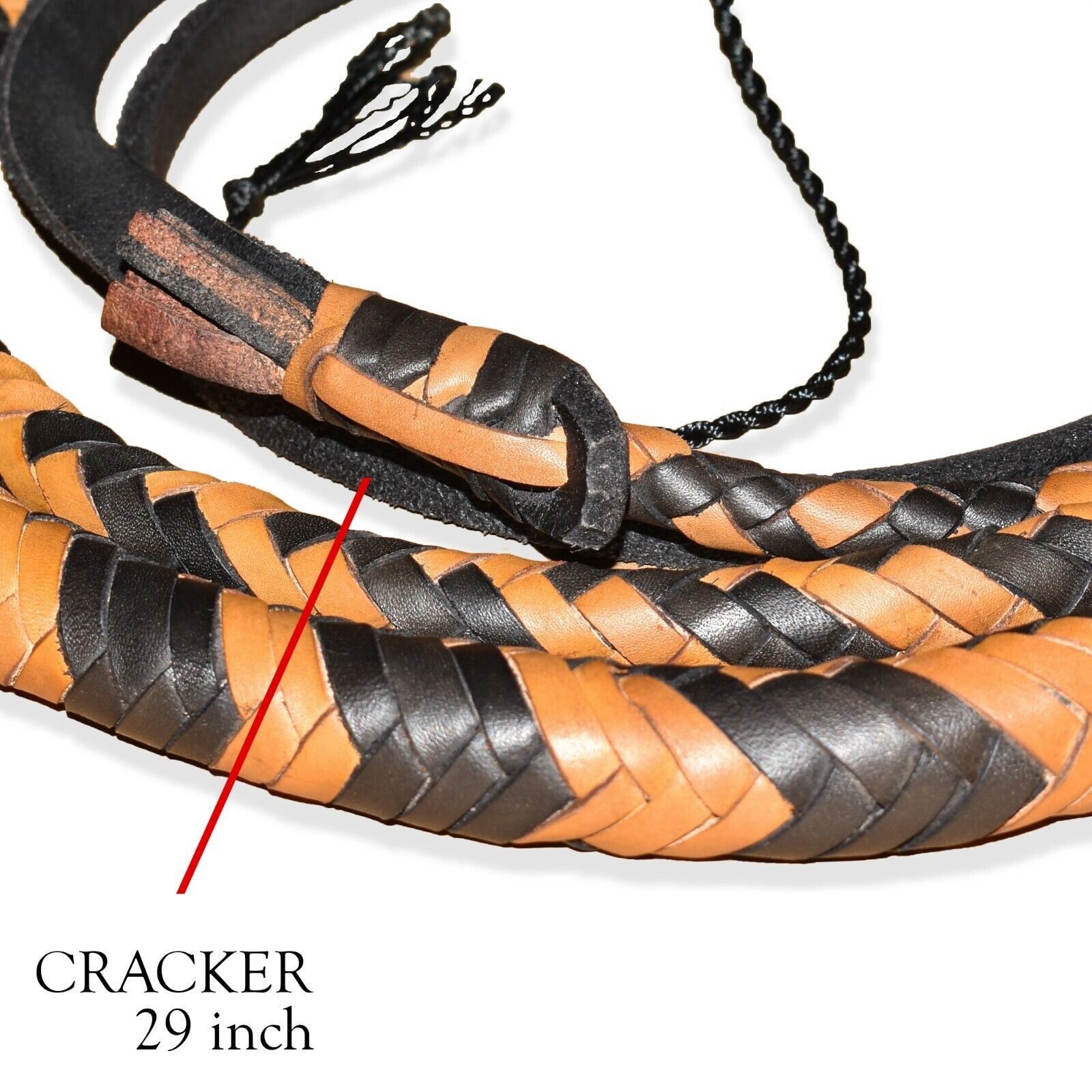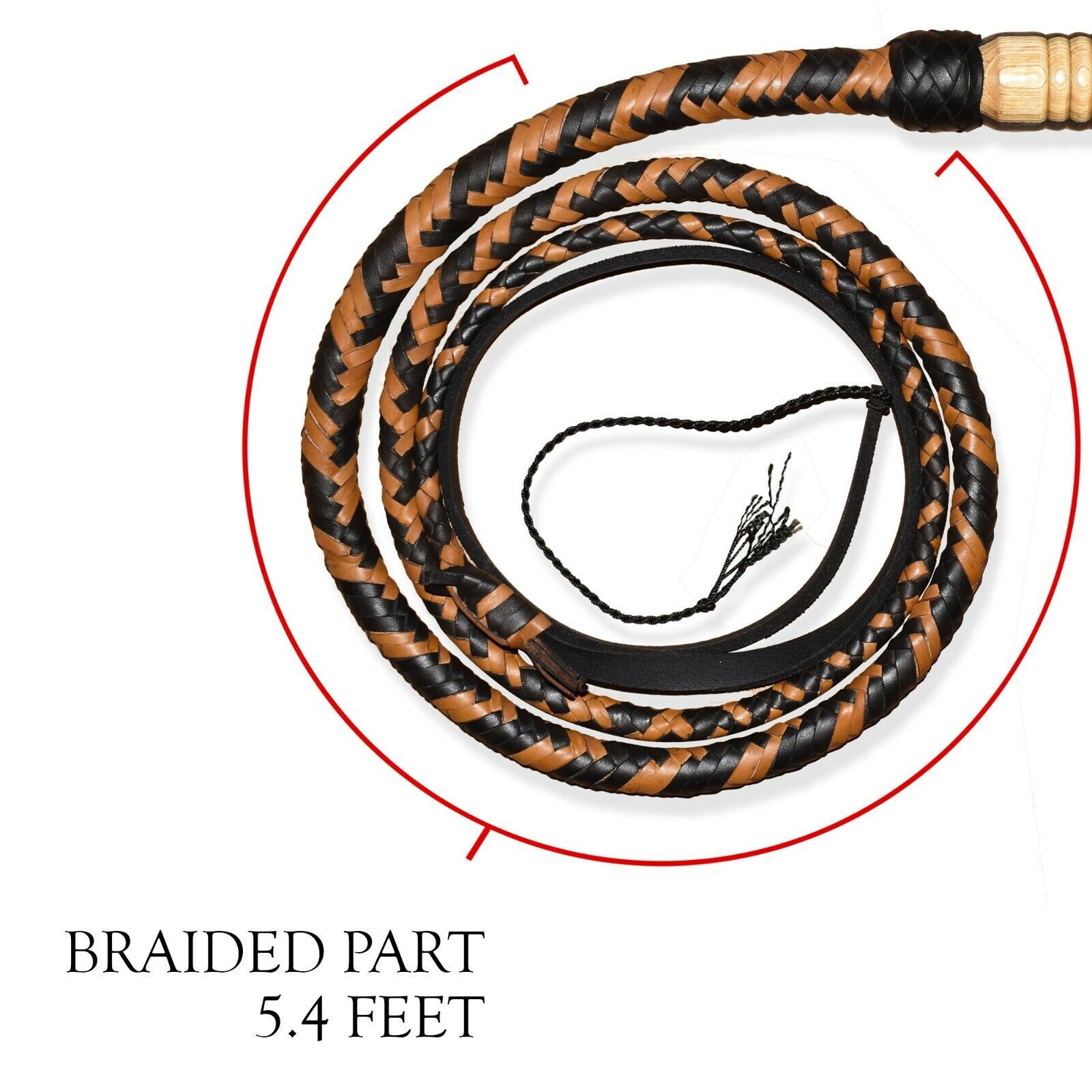 Whip length 06 Feet is measured from base of handle knob to the end of the braiding (not including the Fall, Cracker/Popper and Wrist loop).