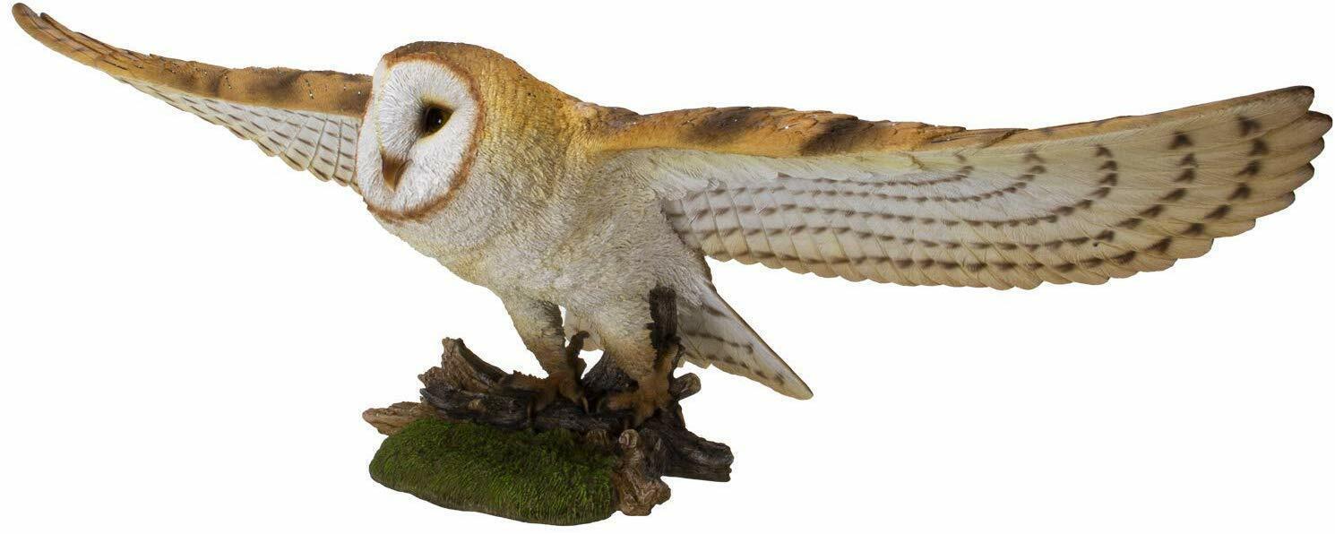 ? This Beautiful Realistic Looking Common Barn Owl Statue is made of designer composite polystone resin, hand painted and polished. Polystone which is composed of polyurethane, resin, and mixed with powdered stone additives that give it added weight and a porcelain or "stone-like" feel. Polystone is very durable and delivers a cleaner, more substantial representation of an original sculpture than other common materials.