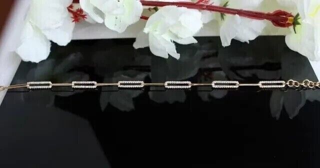 5Ct Round Cut Lab Created Diamond Paperclip Link Bracelet 14K Yellow Gold Plated