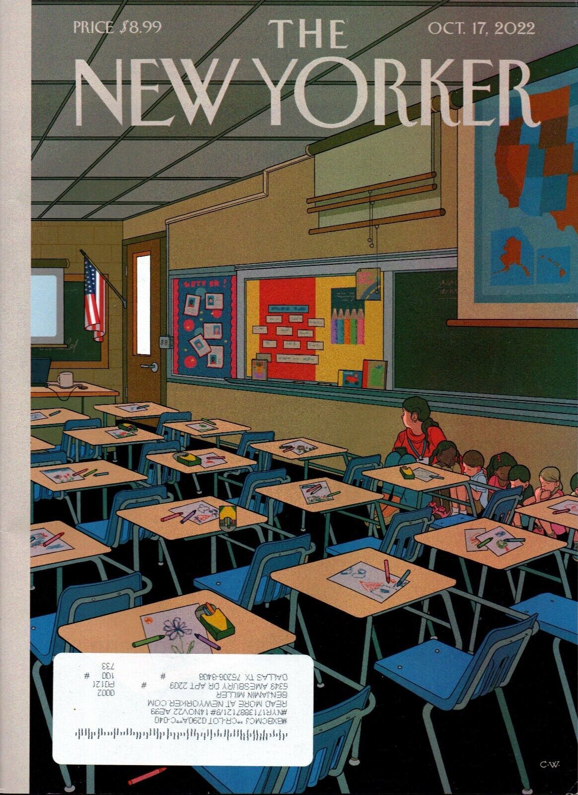 This is an original copy of The New Yorker Magazine. This is the October 17, 2022 issue. The cover has minor shelf wear. The pages are clean. There are no missing or torn pages.