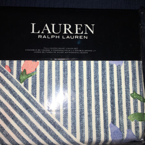 RALPH LAUREN MAGGIE FLORAL STRIPE 4pc F/QUEEN DUVET SET INDIGO BNIP