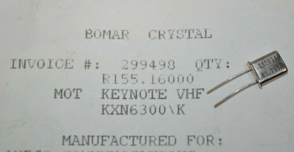 NOS BOMAR Radio Crystal Receive R 155.160 MHz MOT Keynote VHF KXN6300/K