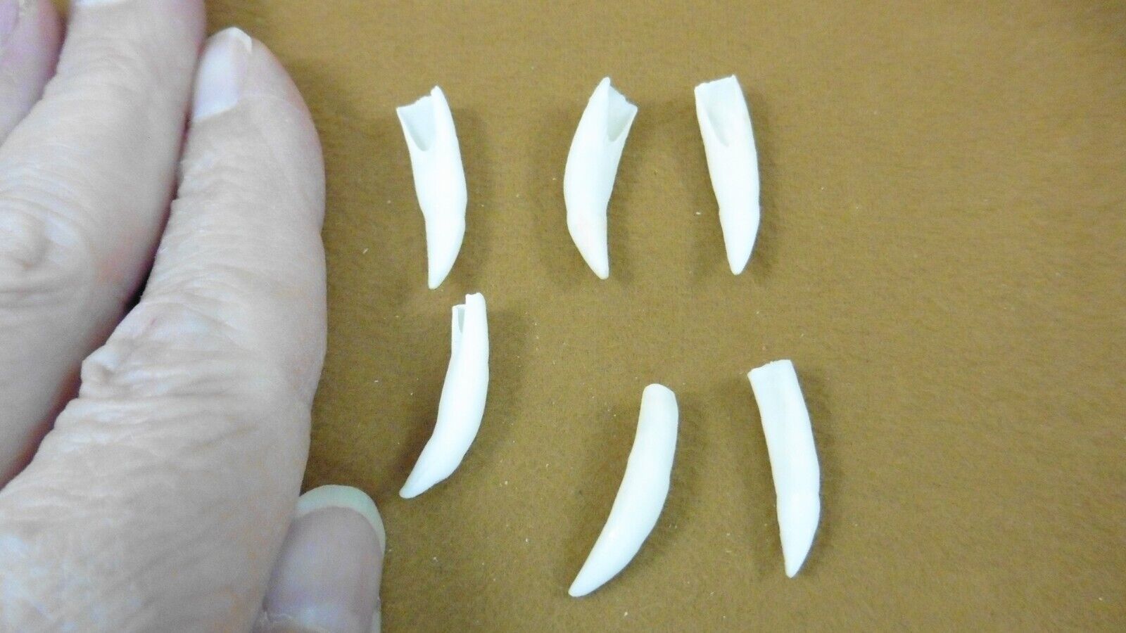 (Internal #G371-43-4) You are bidding on a Set of SIX, 1" long genuine, natural gator t**th. Measured over the curve from tip of to top. This is exactly the item you would receive.