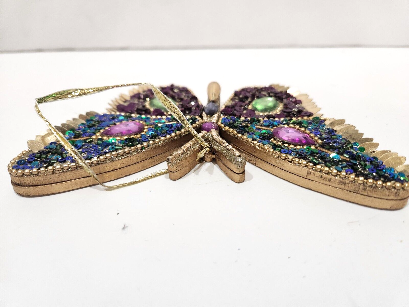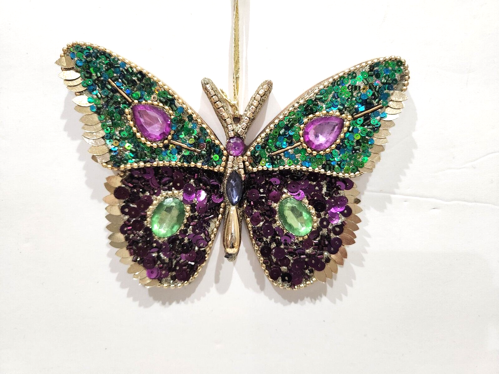 Up for sale we have this beautiful sequins butterfly ornament for your Christmas tree decor. The butterfly is so beautiful!! It measures approx 5.25" wide x 4" tall.