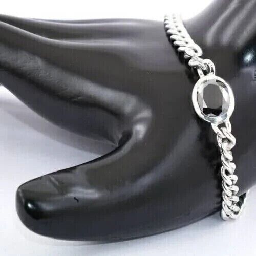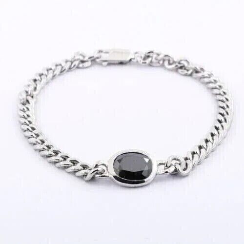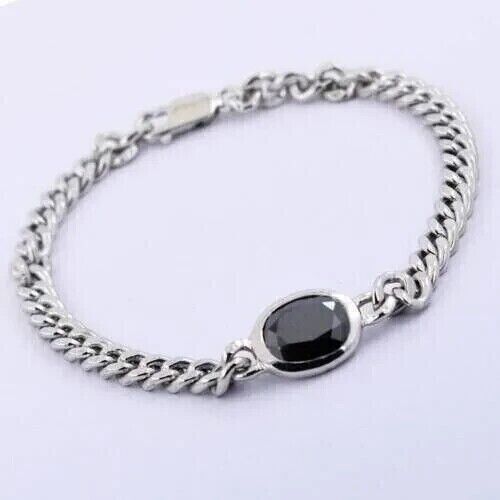 4Ct Oval Cut Black Diamond 14K White Gold Plated Men's Unique Bracelet 7.5 "