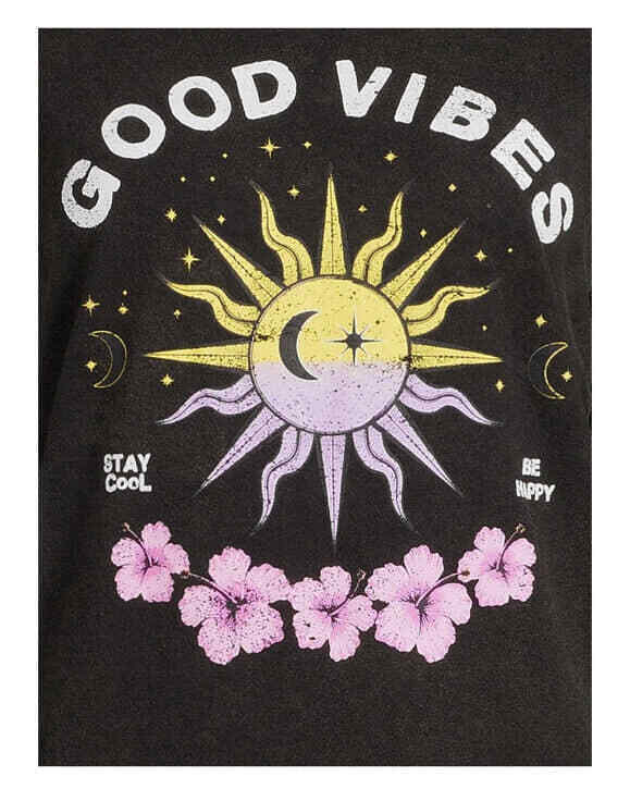 No Boundaries Juniors Good Vibes Boyfriend T-Shirt Size S (3-5) Color Black