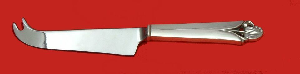 Sterling Silver CUSTOM MADE HOLLOW HANDLE WITH STAINLESS CHEESE KNIFE WITH PICK APPROXIMATELY 7 3/4" in the pattern WOODLILY BY FRANK SMITH. It is NOT monogrammed and is in excellent condition.