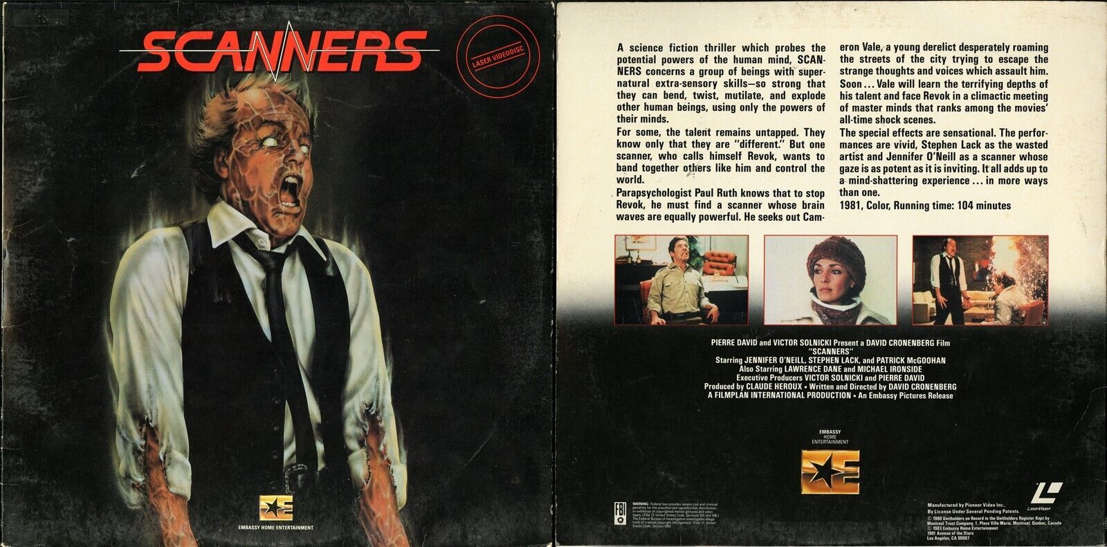 SCANNERS LASERDISC 1983 JENNIFER O'NEILL MICHAEL IRONSIDE EMBASSY VIDEO TESTED