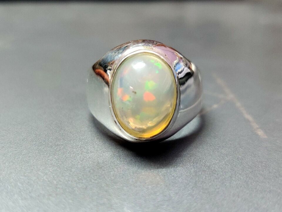 925 Sterling Silver 7.25Ct Original White Fire Opal Gemstone Handmade Men Ring