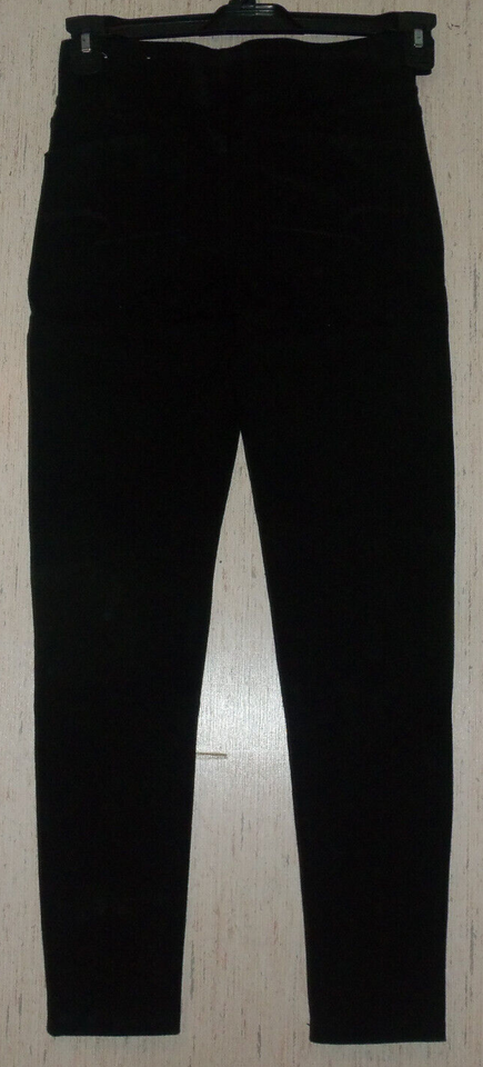 SIZE: S -- ELASTIC WAIST MEASURES 13 1/2" ACROSS LAYING FLAT, INSEAM IS 27 1/2", RISE IS 10 1/2", BACK POCKETS, 4 3/4" ACROSS LEG OPENING LAYING FLAT