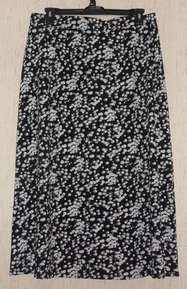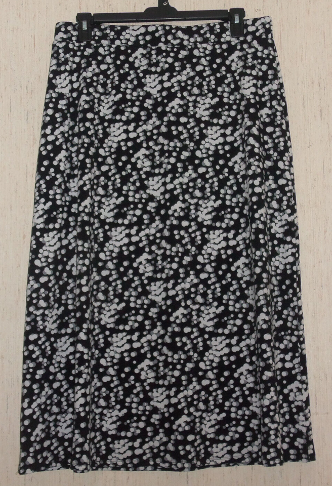 NEW WOMENS Christopher & Banks BLACK W/ POLKA DOTS KNIT PULL ON SKIRT SIZE L