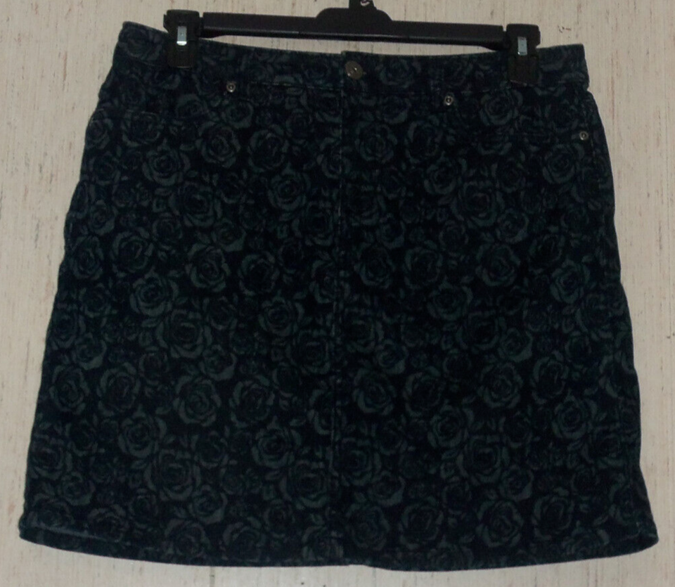 EXCELLENT WOMENS Christopher & Banks ROSES FLORAL PRINT DENIM SKORT SIZE 10