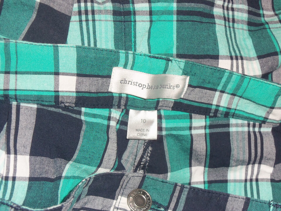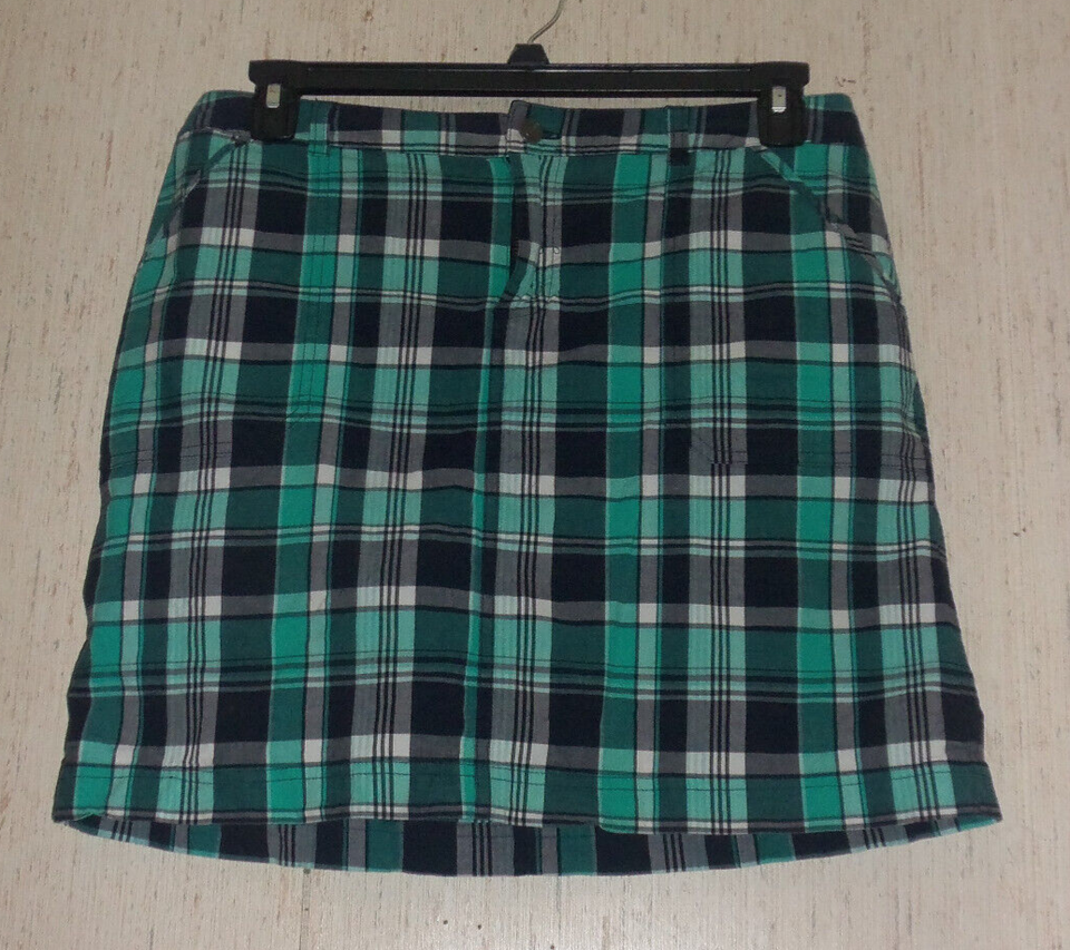 EXCELLENT WOMENS christopher & banks NAVY BLUE PLAID SKORT W/ POCKETS SIZE 10