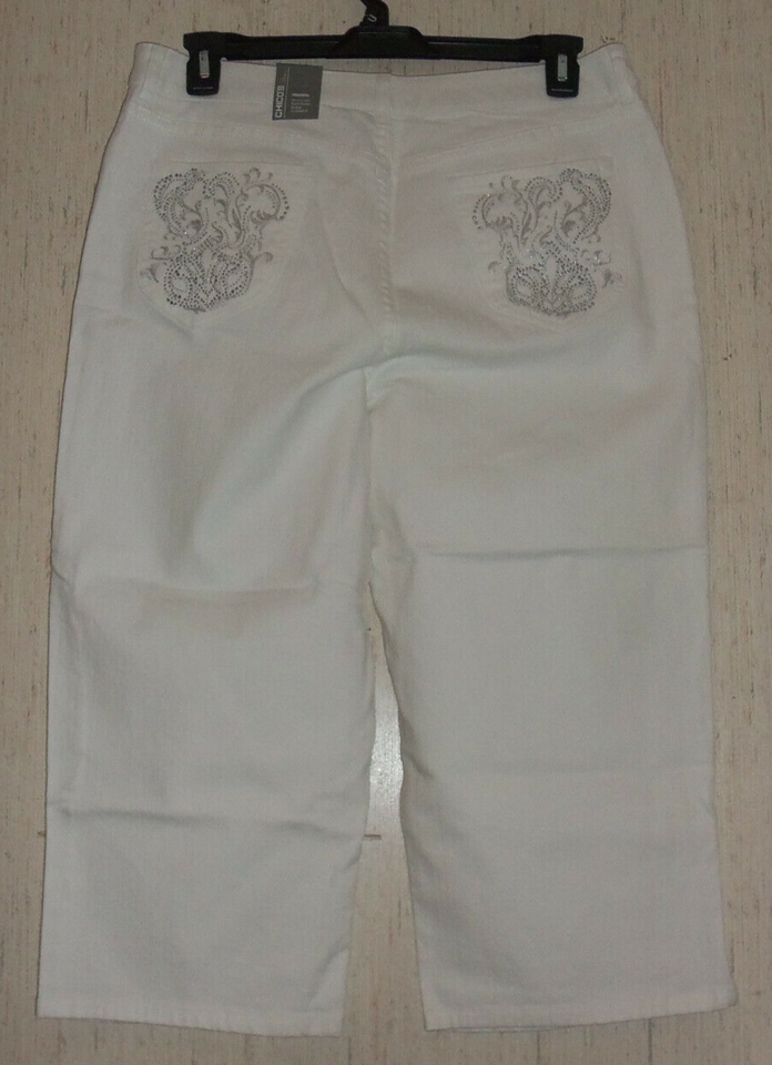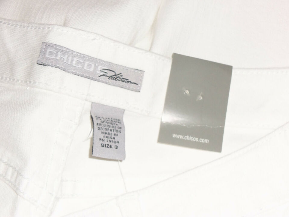 NWT WOMENS $79 CHICO'S Platinum ORIGINAL WHITE DENIM CAPRI SIZE 3 (16)
