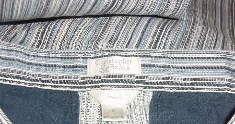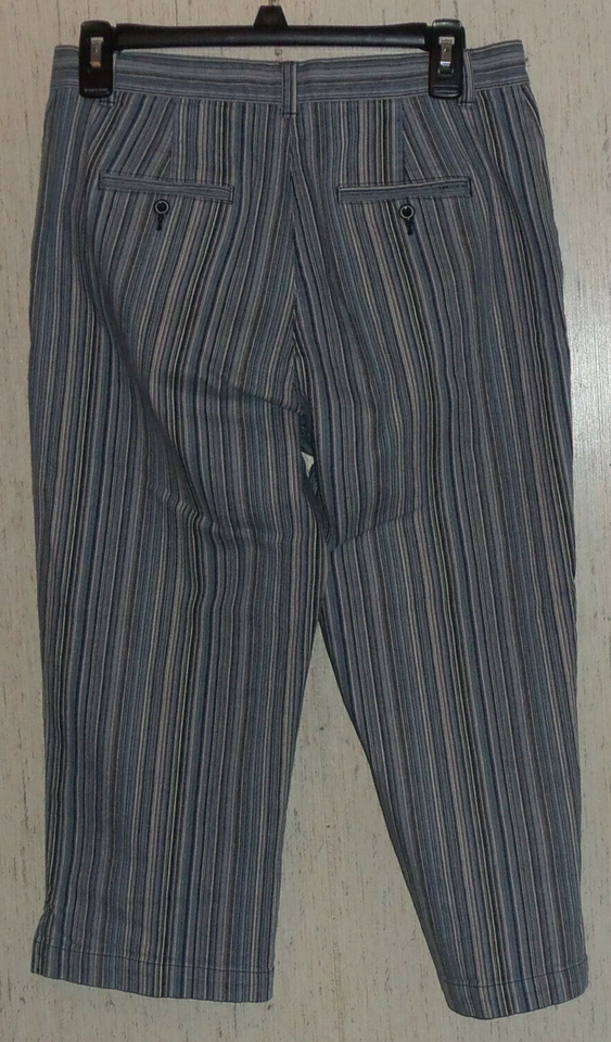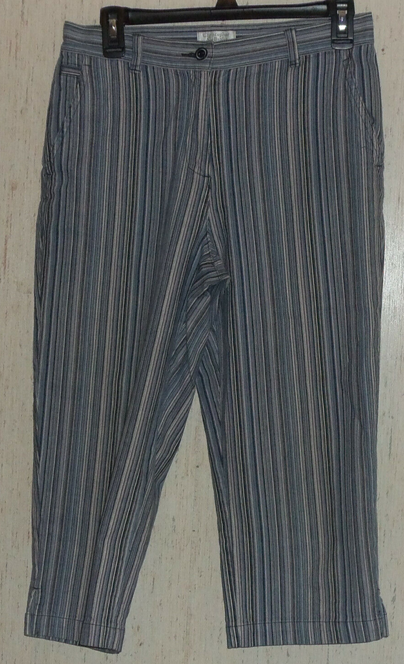 EXCELLENT WOMENS Christopher & Banks Stretch BLUE PINSTRIPE DENIM CAPRIS SIZE 6