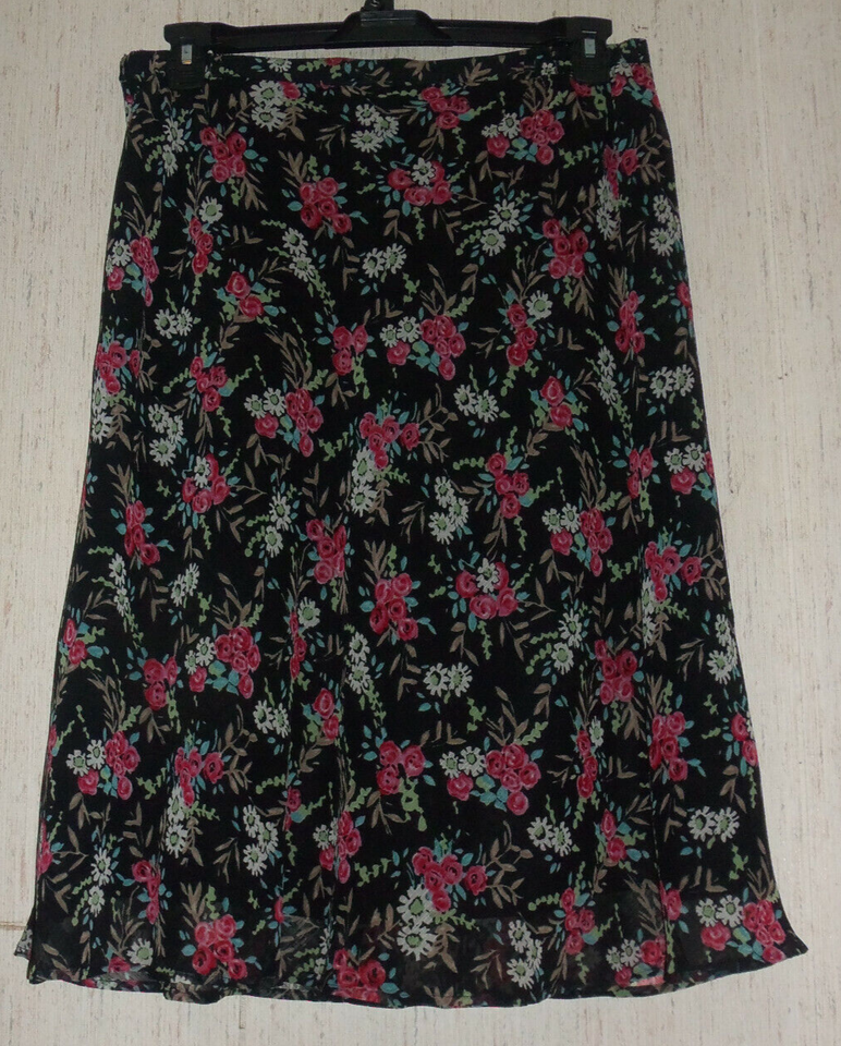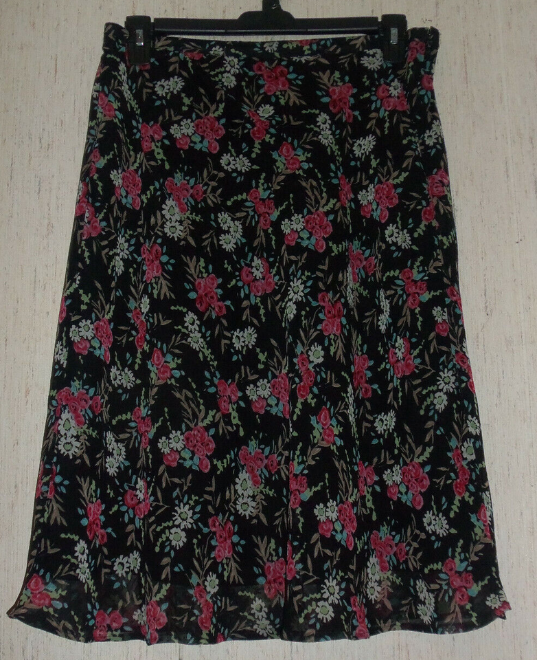 NEW WOMENS JACLYN SMITH BLACK W/ PRETTY FLORAL PRINT FULLY LINED SKIRT SIZE L
