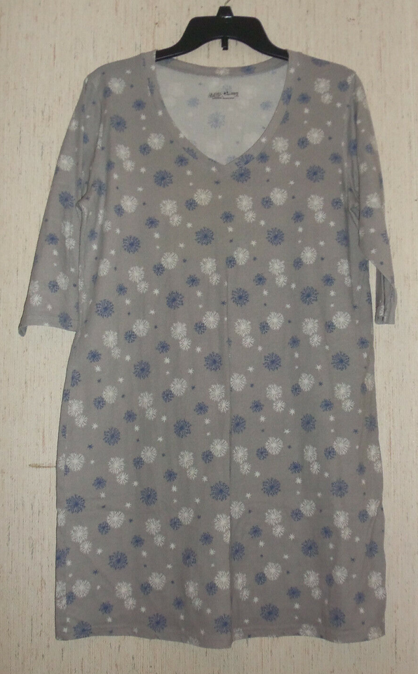 EXCELLENT WOMENS GILLIGAN & O'MALLEY GRAY W/ FLORAL KNIT NIGHTGOWN SIZE L