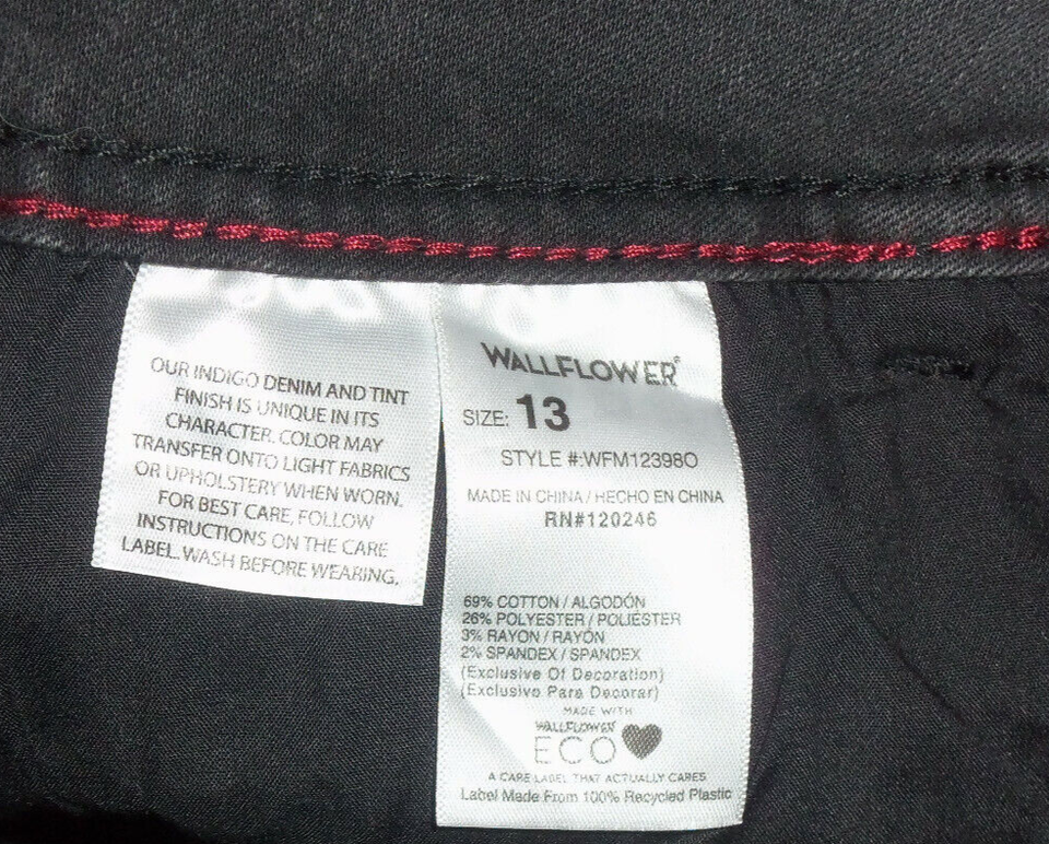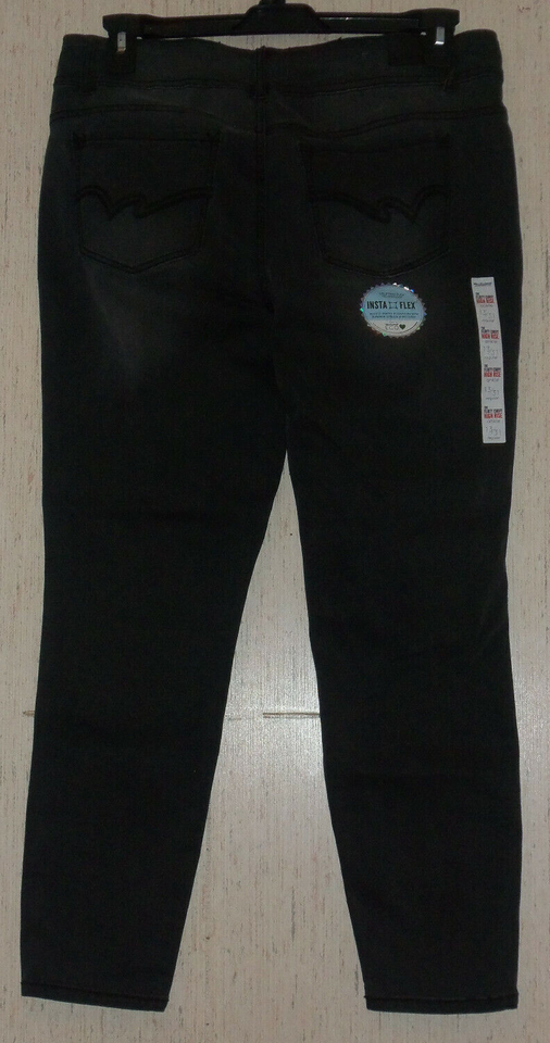 NWT WOMENS WALLFLOWER CURVY HIGH RISE ankle DISTRESSED BLACK JEANS SZ 13 / 31