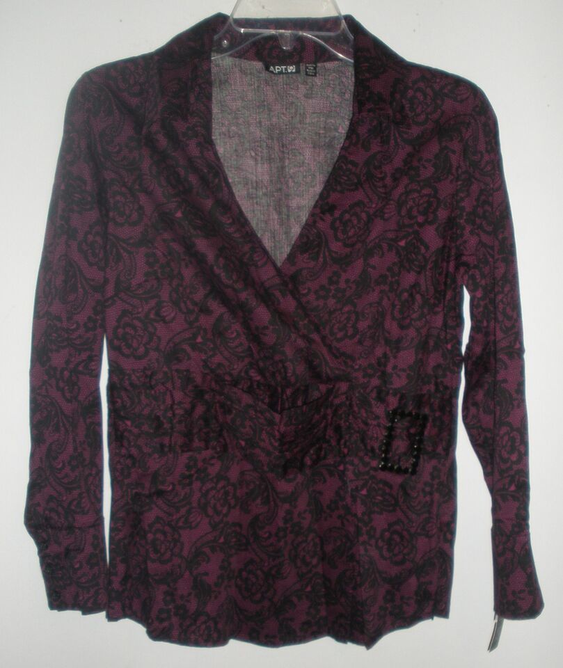 NWT WOMENS APT. 9 PURPLE & BLACK PRINT BLOUSE SIZE PL