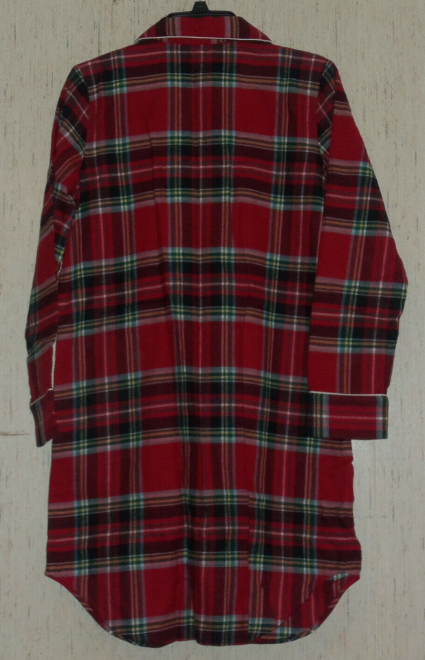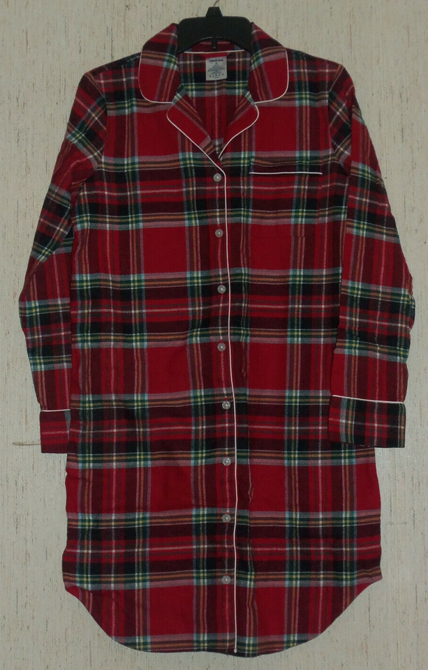 NEW WOMENS LANDS' END RED PLAID SUPER SOFT FLANNEL NIGHTSHIRT SIZE XS (2-4)