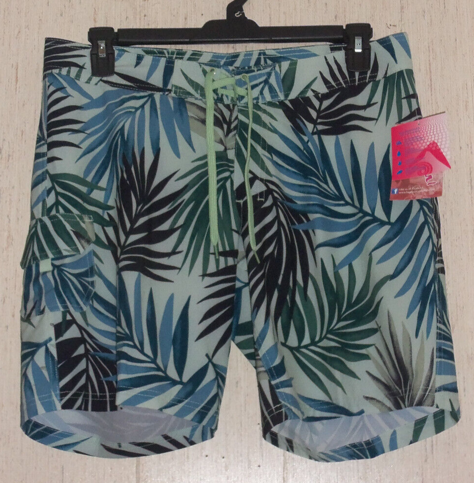 NWT WOMENS $38 Kanu Surf UPF 50+ Quick Dry BALI GREEN PRINT BOARD SHORT SIZE 12