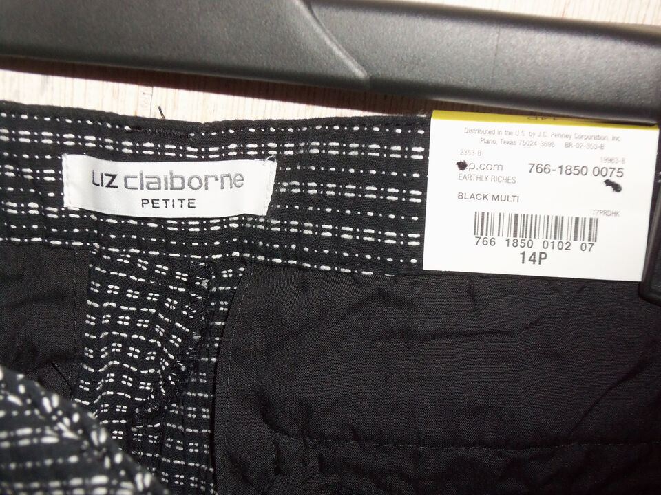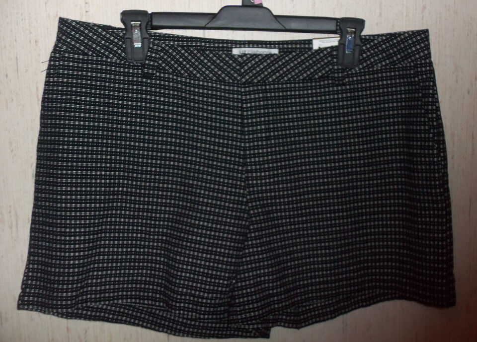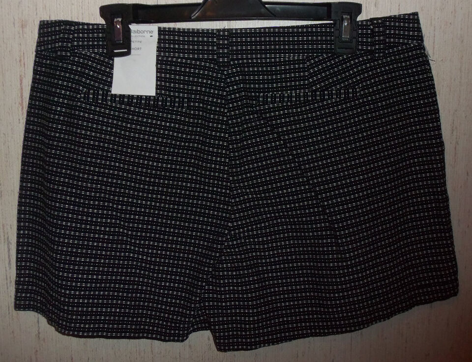 NWT WOMENS LIZ CLAIBORNE COLLECTION DRESSY BLACK W/ WHITE PLAID SHORTS SIZE 14P