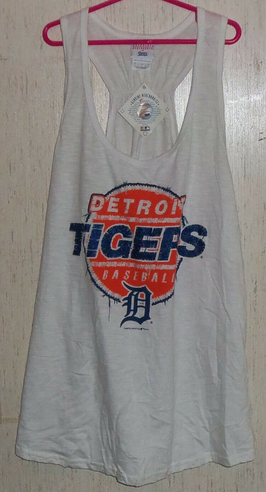 NWT WOMENS MLB GENUINE MERCHANDISE Detroit Tigers WHITE HEATHER TANK TOP SIZE L