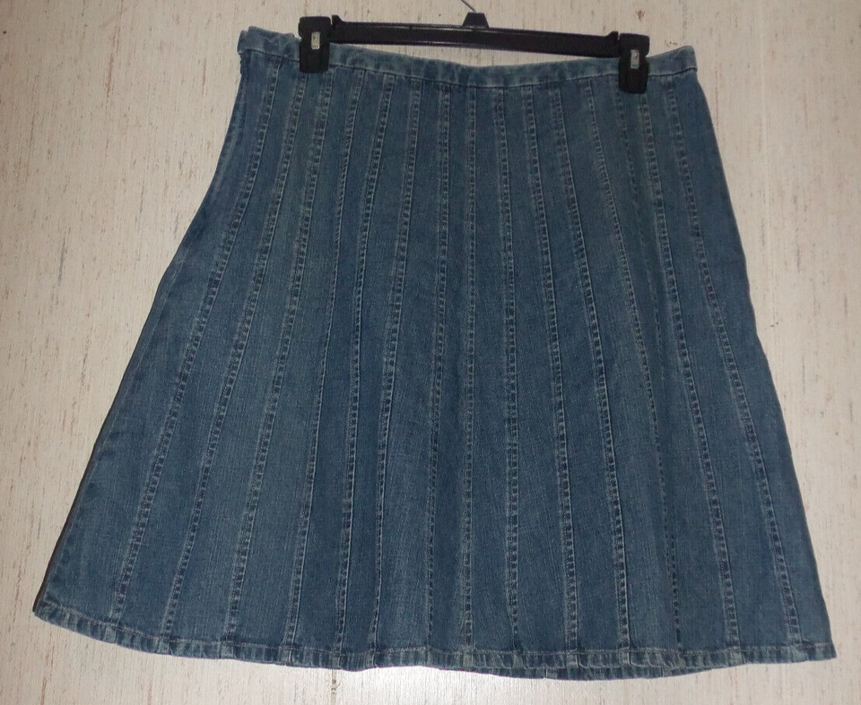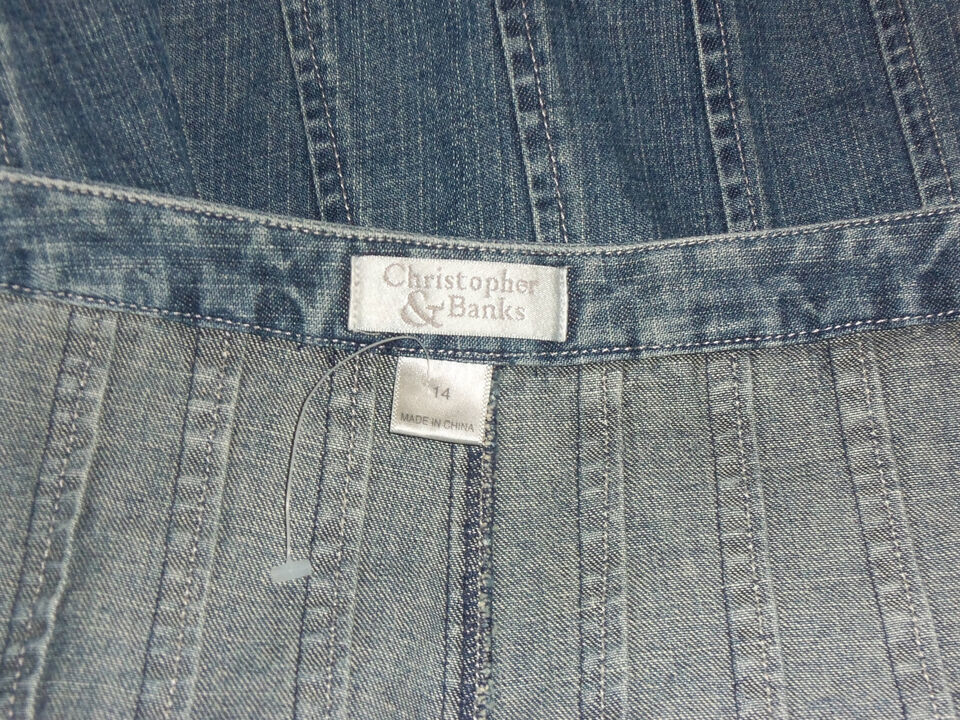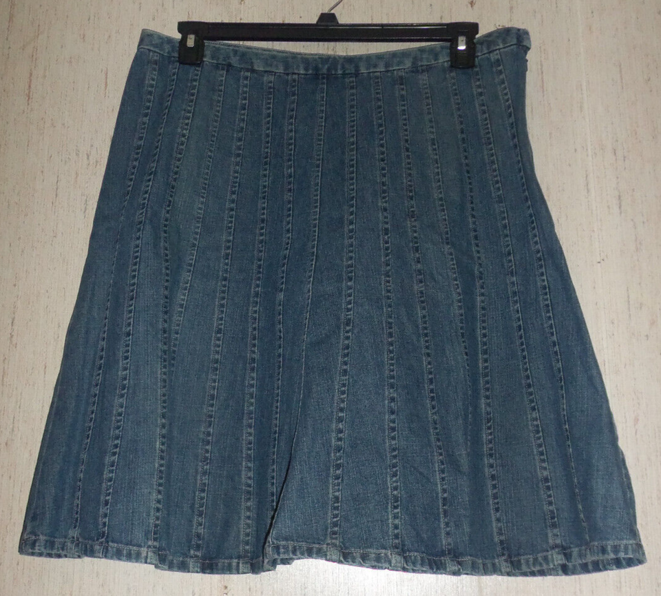 EXCELLENT WOMENS Christopher & Banks DISTRESSED BLUE JEAN A-LINE SKIRT SIZE 14