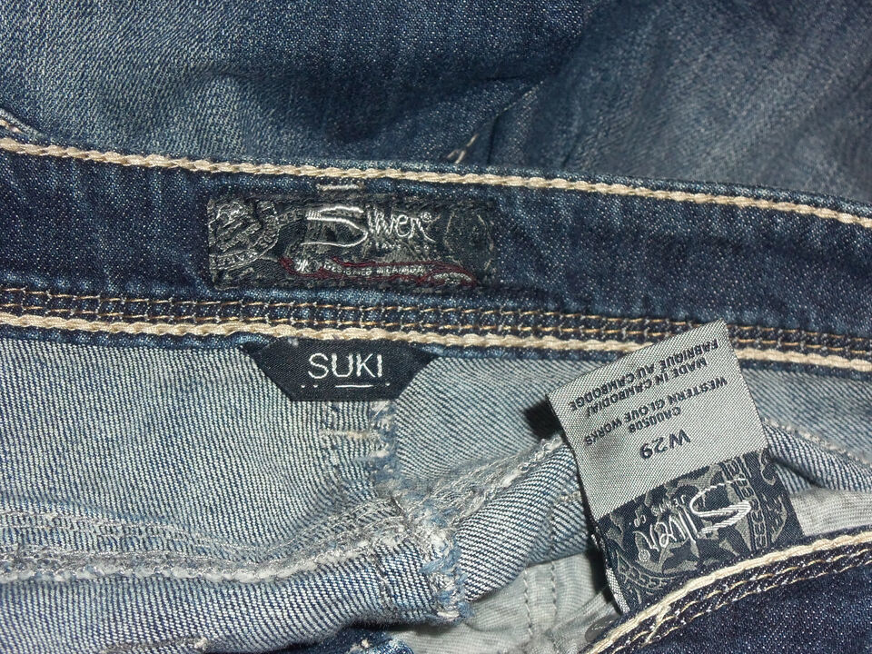 SIZE: 29 -- WAIST MEASURES 15 3/4" ACROSS LAYING FLAT, INSEAM IS 5 1/2", RISE IS 10", FRONT ZIPPER, 5 POCKET, BELT LOOPS