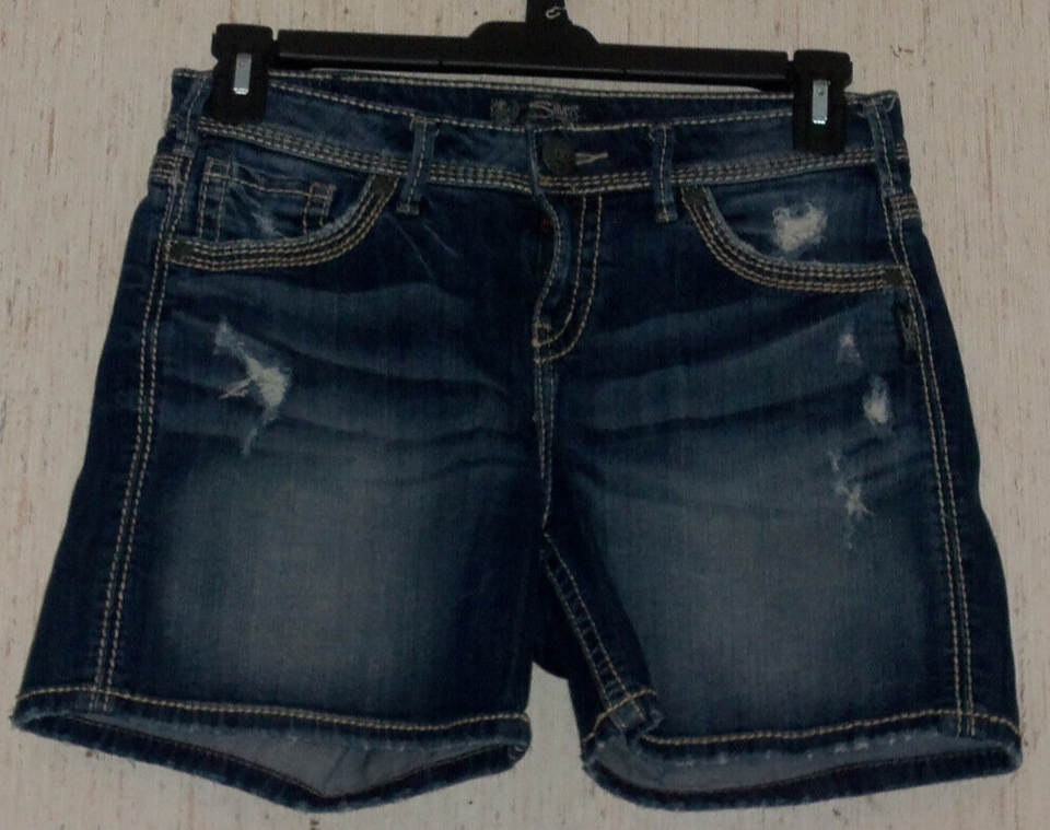 EXCELLENT WOMENS Silver JEANS "SUKI" DISTRESSED DENIM SHORTS SIZE 29