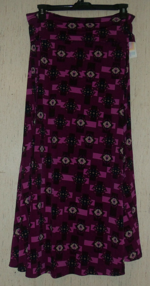 NWT WOMENS LuLaRoe BURGUNDY W/ GEOMETRIC PRINT PULL ON KNIT MAXI SKIRT SIZE L